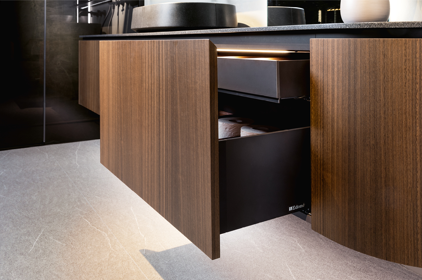 For this reason, Edoné offers under-top and under-drawer lighting solutions, which can be installed both horizontally and vertically to ensure maximum comfort and convenience in daily use.