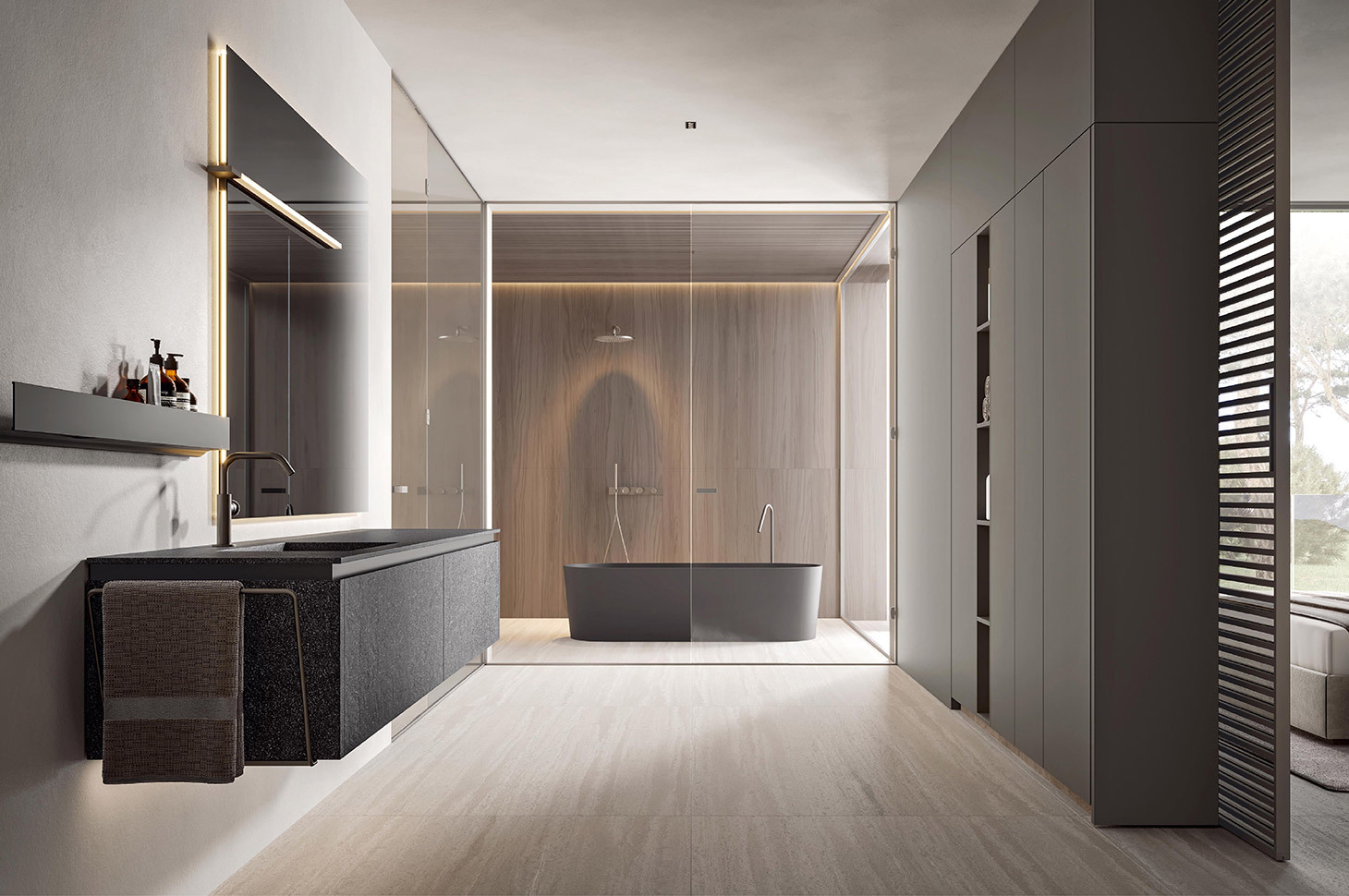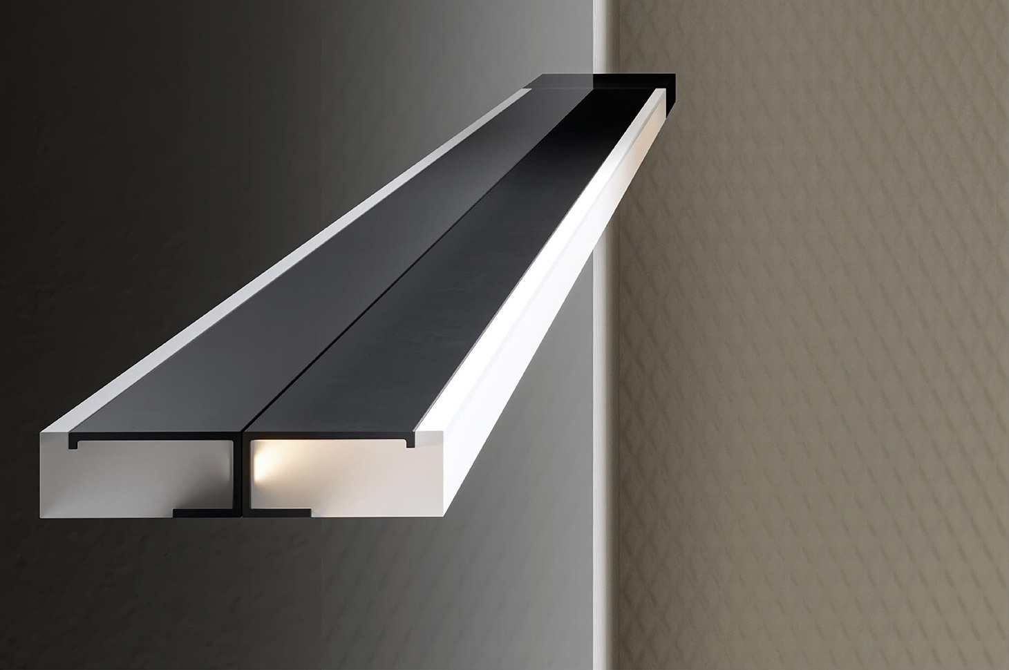 Designed to meet both stylistic and functional needs, this system is perfect when flexible solutions are sought to best enhance lighting design, which is essential for creating that atmosphere of relaxation and well-being that — in our vision — every bathroom environment should provide.