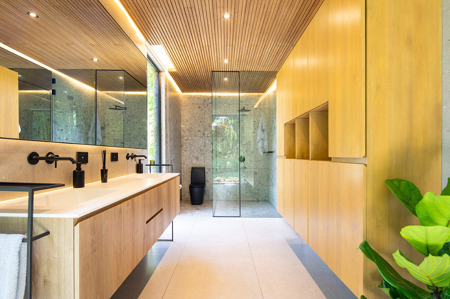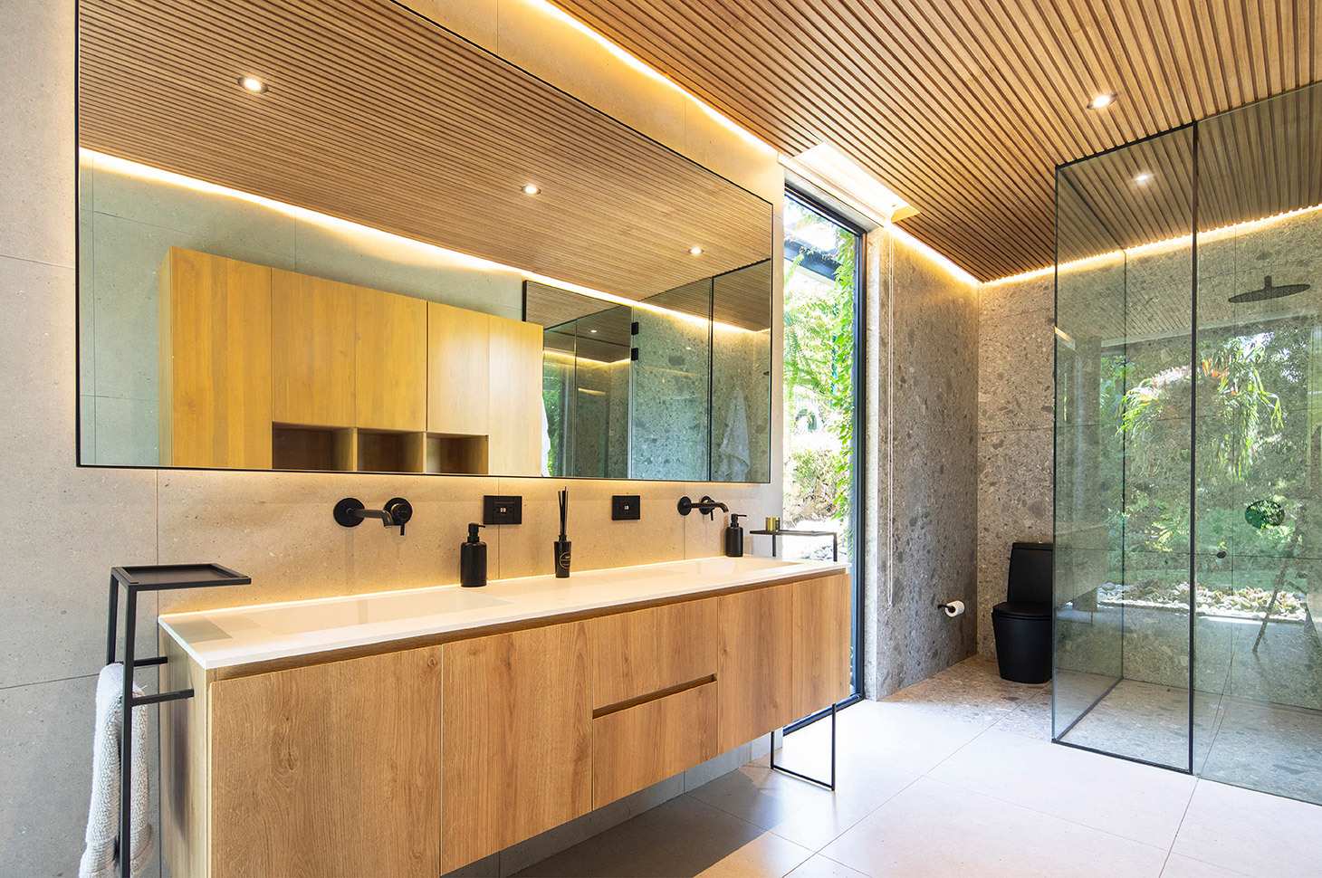 Senza dubbio l’ampissima gamma di colori e materiali finitura è uno degli aspetti strategici dell’offerta Edoné. Ci ha permesso di trovare la tipologia di essenza e la sfumatura di tinta perfetta per dare a ciascun bagno l’atmosfera e la continuità di tono e sensazione in linea con il resto degli arredi, con l’ambiente esterno e con il concetto di armonia tra spazi abitati e ambiente naturale che ricercavamo.