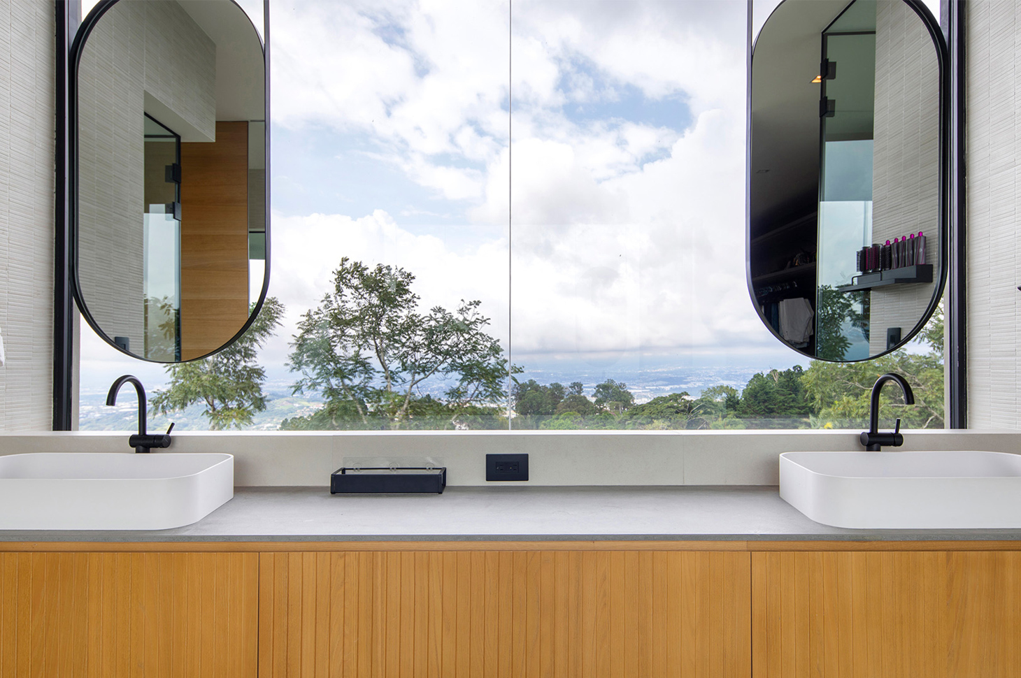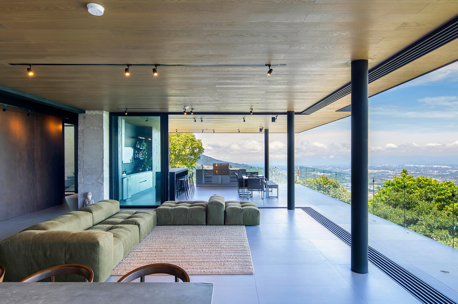 Known for its modern and cosmopolitan soul, Escazú – a few kilometers west of the capital, San José – is one of Costa Rica’s most renowned and fashionable areas. The area offers a high quality of life that is also reflected in architectural and interior taste. This extraordinary project, a collaboration between the architectural firm Garnier, the interior design studio of Taller KEN and Kamalio, is not an exception. Although the area is densely urbanized, Escazú retains a strong and preferential connection with the surrounding nature, which we find expressed and enhanced in every part of Casa Aga’s design concept. Casa Aga combines modern architectural elements, with tropical touches, in a contemporary design characterized by clean lines, sharp geometric shapes and the use of glass, steel and concrete. This is combined with a desire to “incorporate” nature within the living experience, with the use of windows so large that they become true glass walls, allowing uninterrupted panoramic views, maximizing natural lighting, and creating a serene and regenerating atmosphere. The furnishings echo the modern minimalist style, but expressed in soft neutral and textural tones, combined with the use of high-quality materials such as wood, marble and natural stone to impart a distinctive elegance and sophistication.
