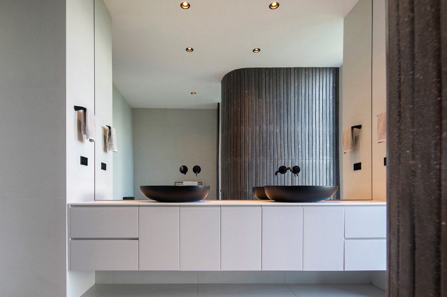 Understanding and knowing how to handle specific and special requests is one of the factors that has proved to be strategic in our collaboration over the years. In this project, for example, one of the crucial points was the realization of that full-wall mirror we wanted to install in the bathroom with the Ovo sink (bathroom 1). Not only did you make us a large, specifically tailored mirror, but – what is more – the detail of that custom millimeter drilling to install the faucets, as if they were floating on the mirror, was really the icing on the cake. Custom design details – everyone likes to brag about a unique solution.