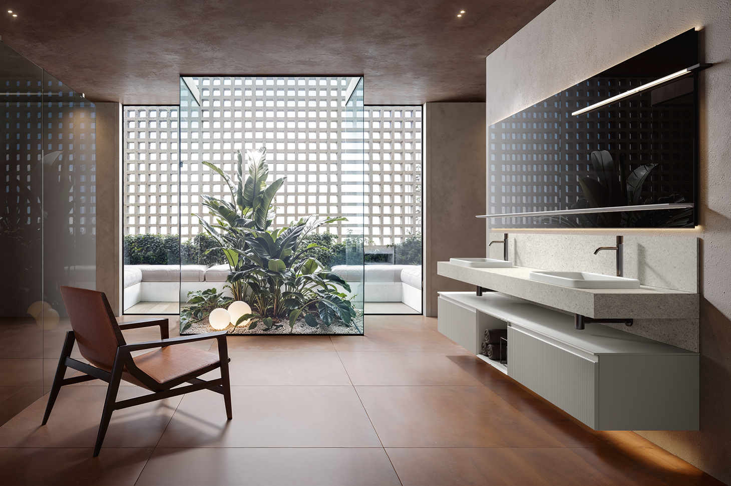 From tone selections to unique shades, harmonized pairings, or striking contrasts, color remains a key factor in defining a space’s personality. For this reason, the Eros collection can be customized in the full Edoné color palette, in addition to the four dedicated wood-effect finishes.