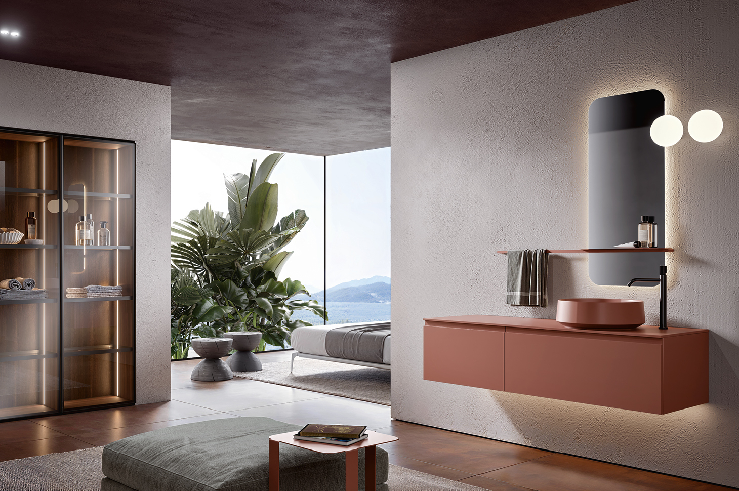 Linear, clean, and essential—this is the essence of the Eros collection in its fully smooth door version. Here, the focus shifts entirely to the volumes and the choice of finish. Ideal for emphasizing stylistic continuity, this version also offers the option to pair customized accessories and complements in matching colors.