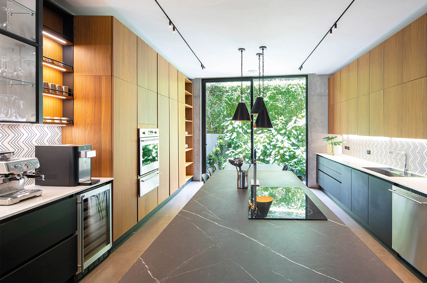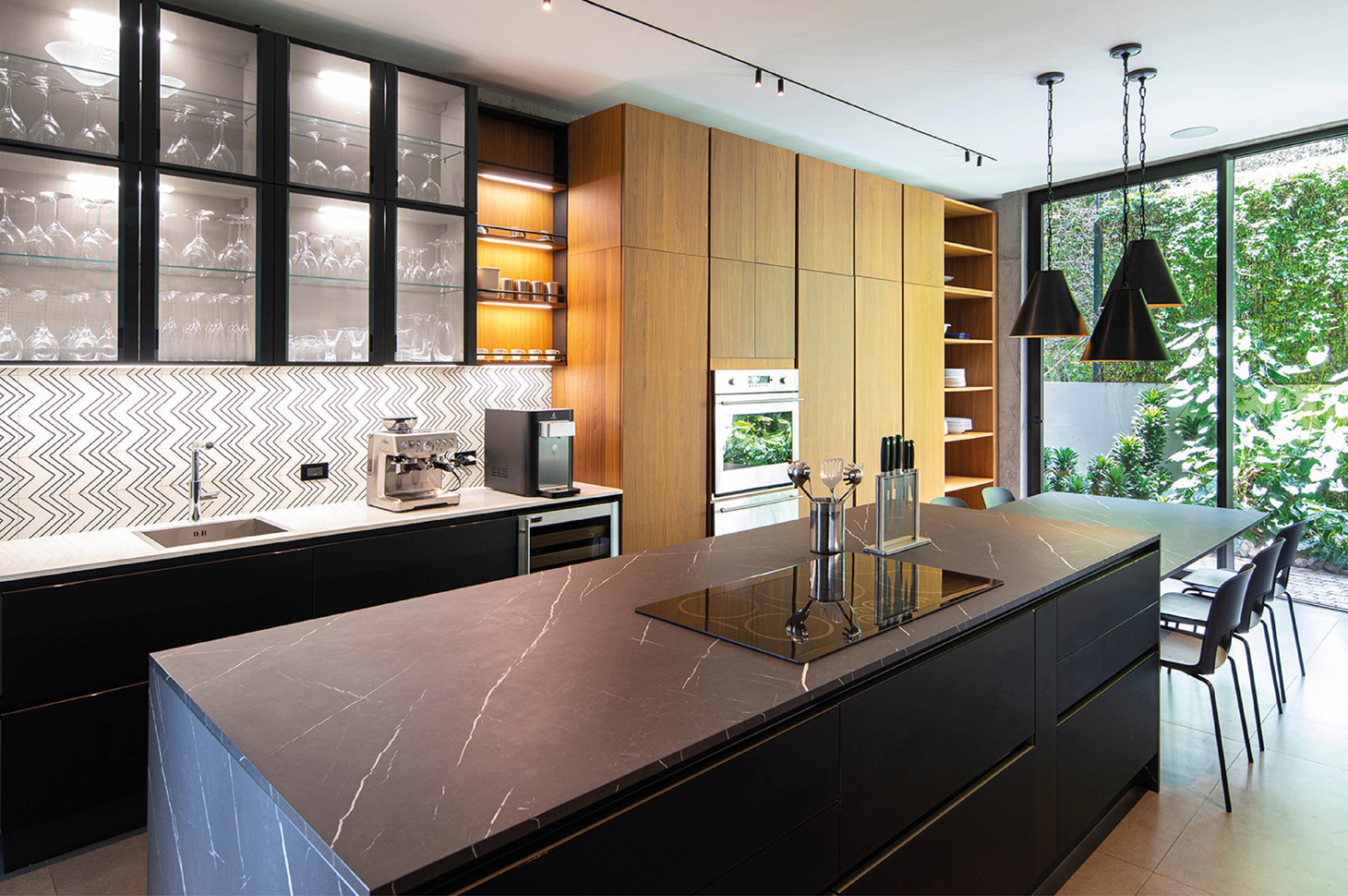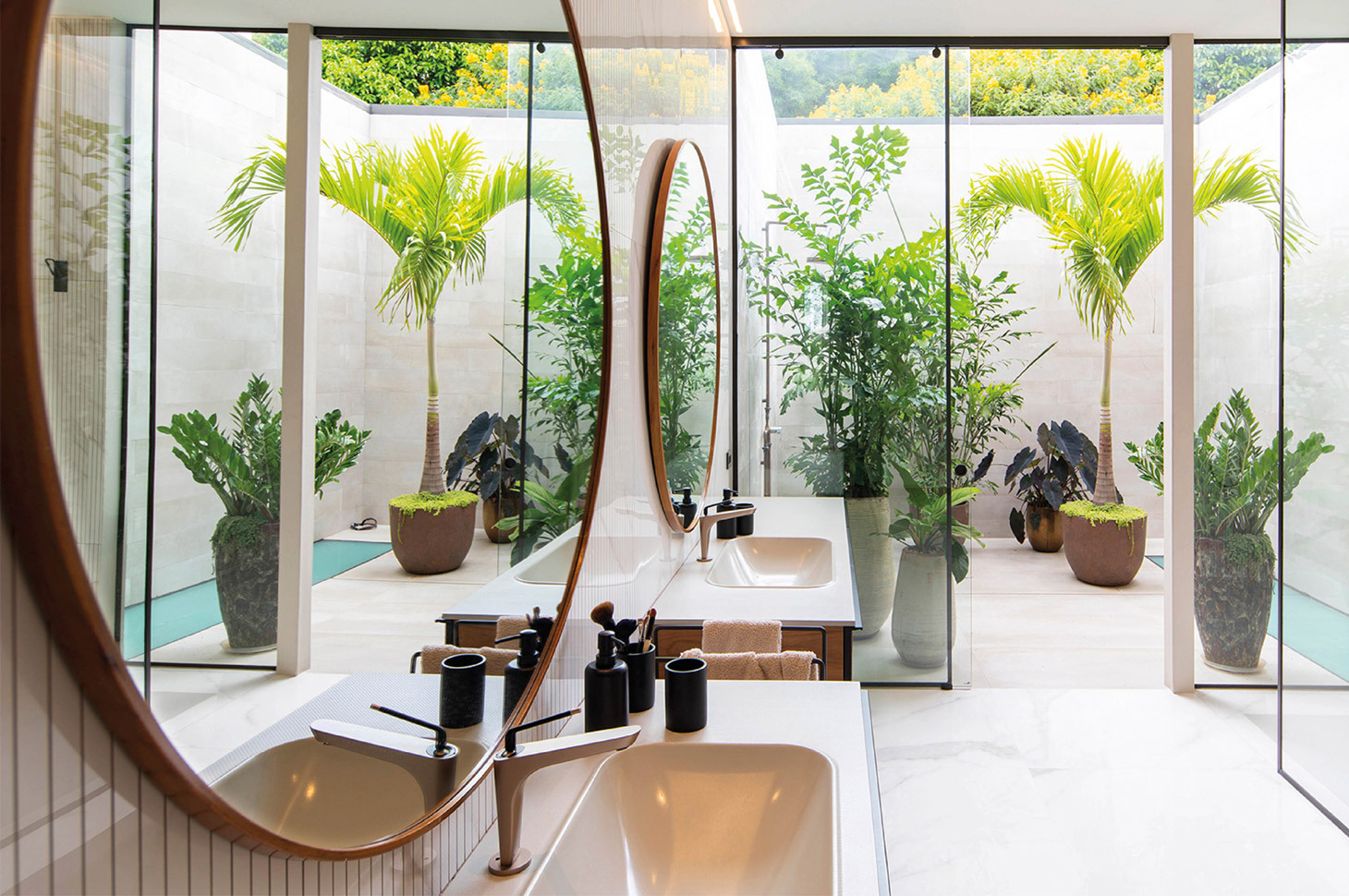 Casa Las Vistas si sviluppa su tre piani, per un totale di più di 700mq. In ogni ambiente è chiara ed evidente la ricerca di un dialogo costante con la rigogliosa natura esterna, ottenuto grazie ad ampie e panoramiche vetrate o, addirittura, grazie spazi che si sviluppano in modo misto, con una parte coperta e una all’aperto. Come accade, ad esempio, nel bagno padronale, in cui gli ampi e confortevoli spazi interni si integrano, grazie ad una apertura vetrata, con un altrettanto ricercato patio, attrezzato con piante in vaso e con doccia esterna. In tutti gli ambienti risalta la ricerca di toni e materiali naturali e terrosi, come l’ardesia, il legno e il marmo, per rafforzare quel senso di connessione tra l’ambiente domestico e il contesto in cui è ubicato.