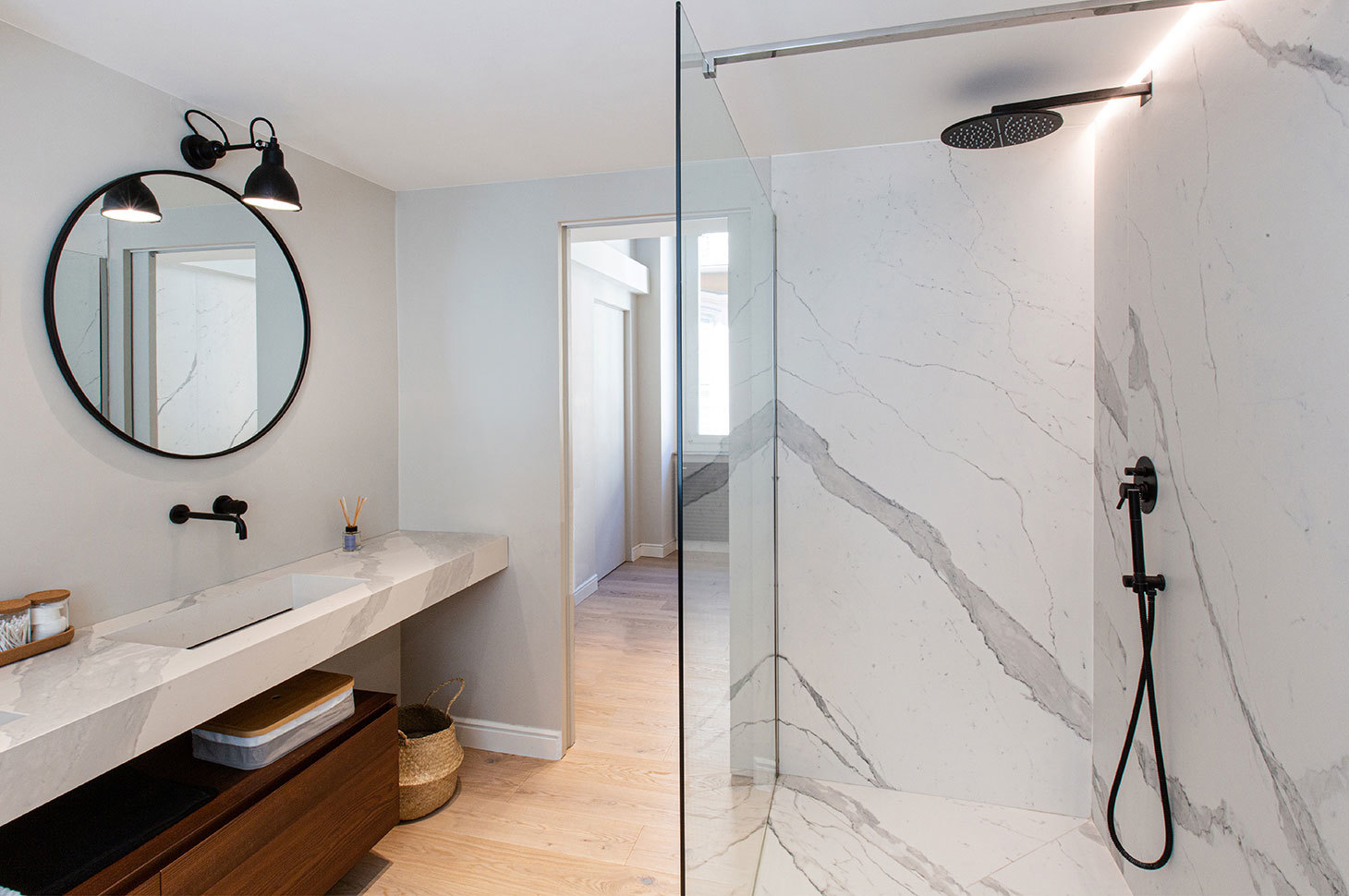 La personalizzazione Edoné è stata davvero fondamentale perché ci ha dato la possibilità di creare una continuità, in tutto il progetto, di materiali puri come il marmo. Il gioco di contrasti conferisce un’anima a questo appartamento, così come l’uso di forme avvolgenti, tonalità fresche e finiture pregiate.
