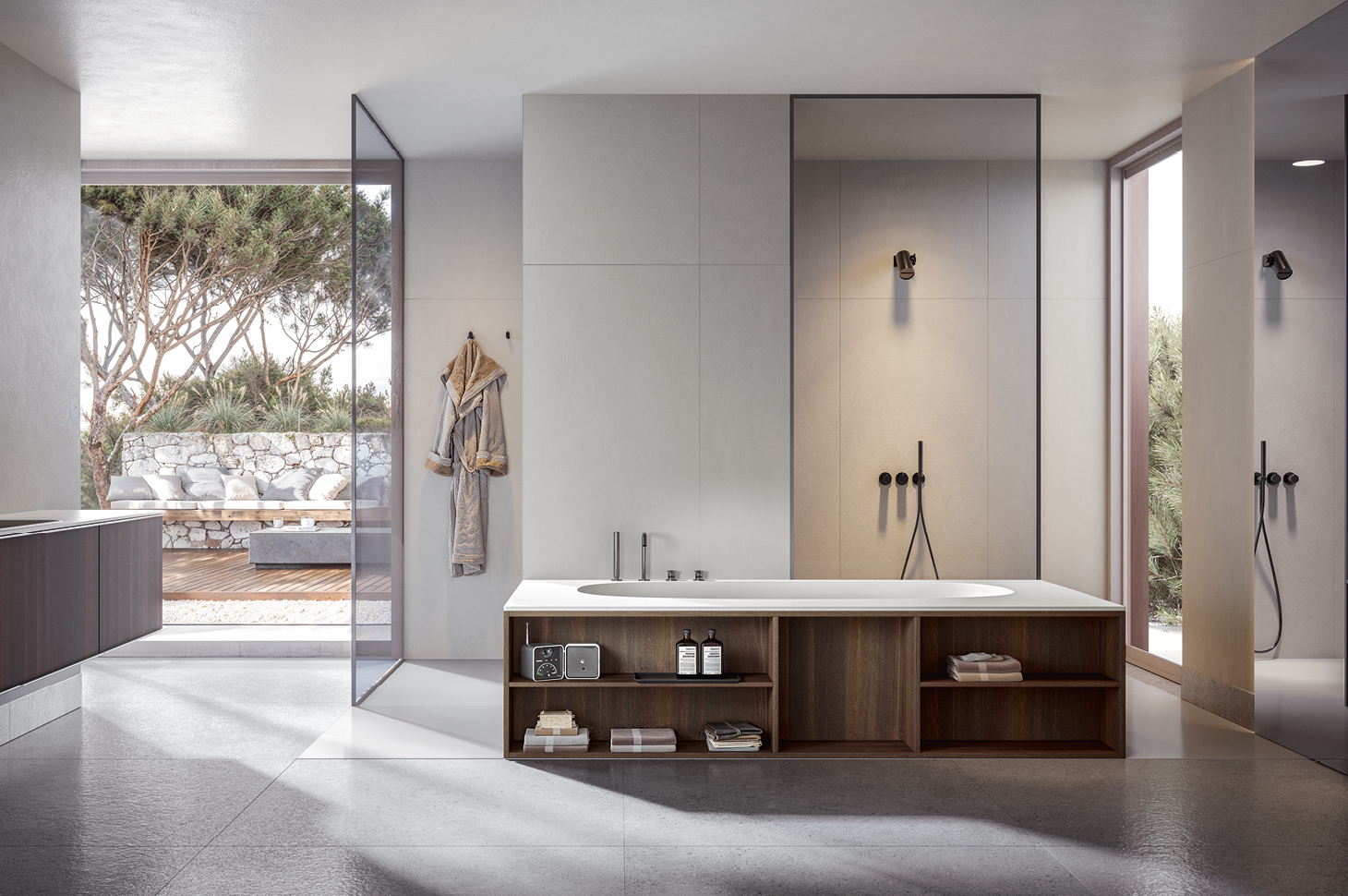 It is precisely with this awareness that the Wellness catalogue offers interior design professionals a range of elements designed to enhance the seamless continuity of a bathroom concept perfectly aligned with Edoné’s distinctive taste.