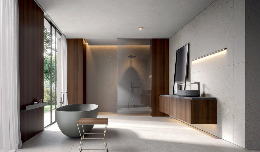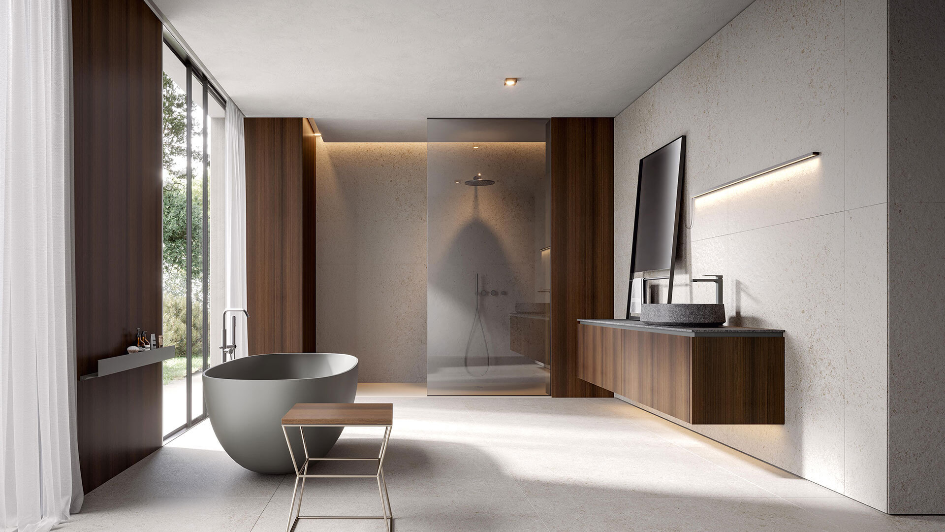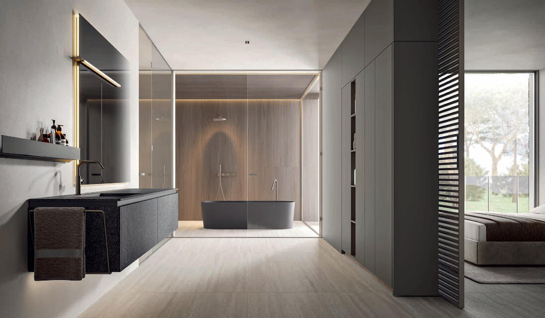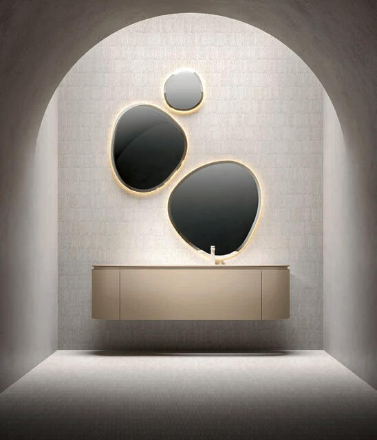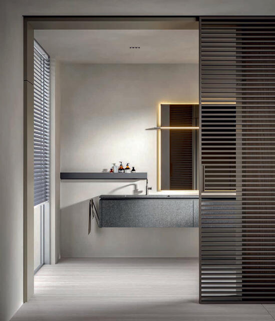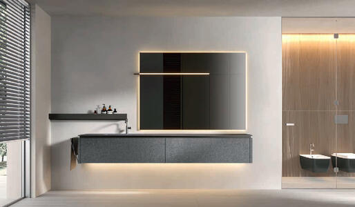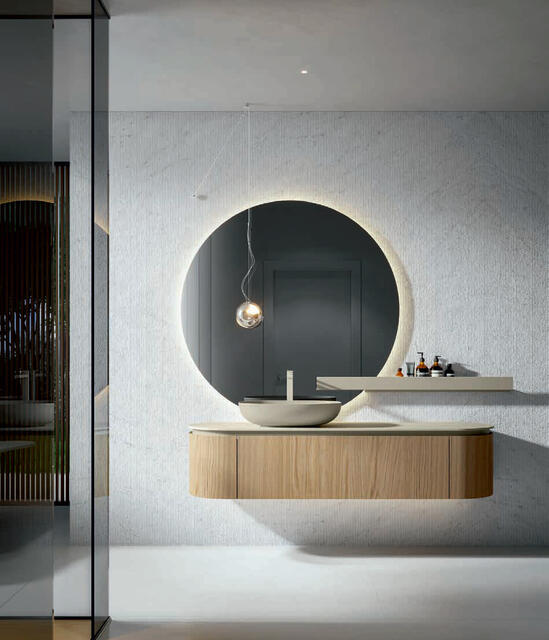 CALIPSO, in the two versions Squared and Circular, is characterized by the groove that runs continuously on three sides of the cabinet. A clean and elegant line, which demarcates the tops, emphasizes the top and loads of emphasis on the perception of the profiles. The lower volumes of the cabinet, thanks to the particular finishes suggested for this collection, seem almost devoid of opening lines and intuitively bring the attention on the throat, key to access the interior spaces.