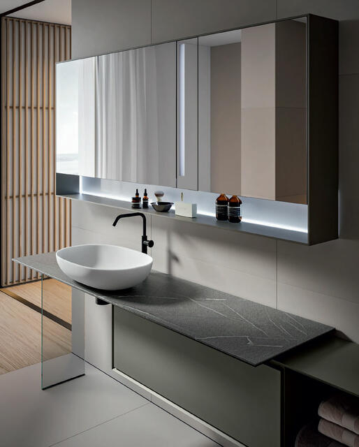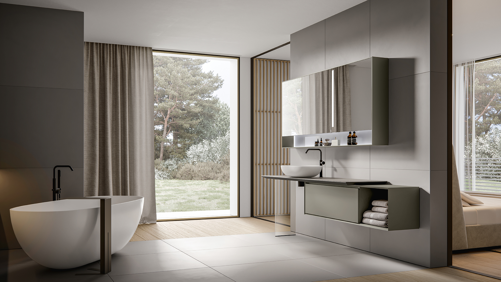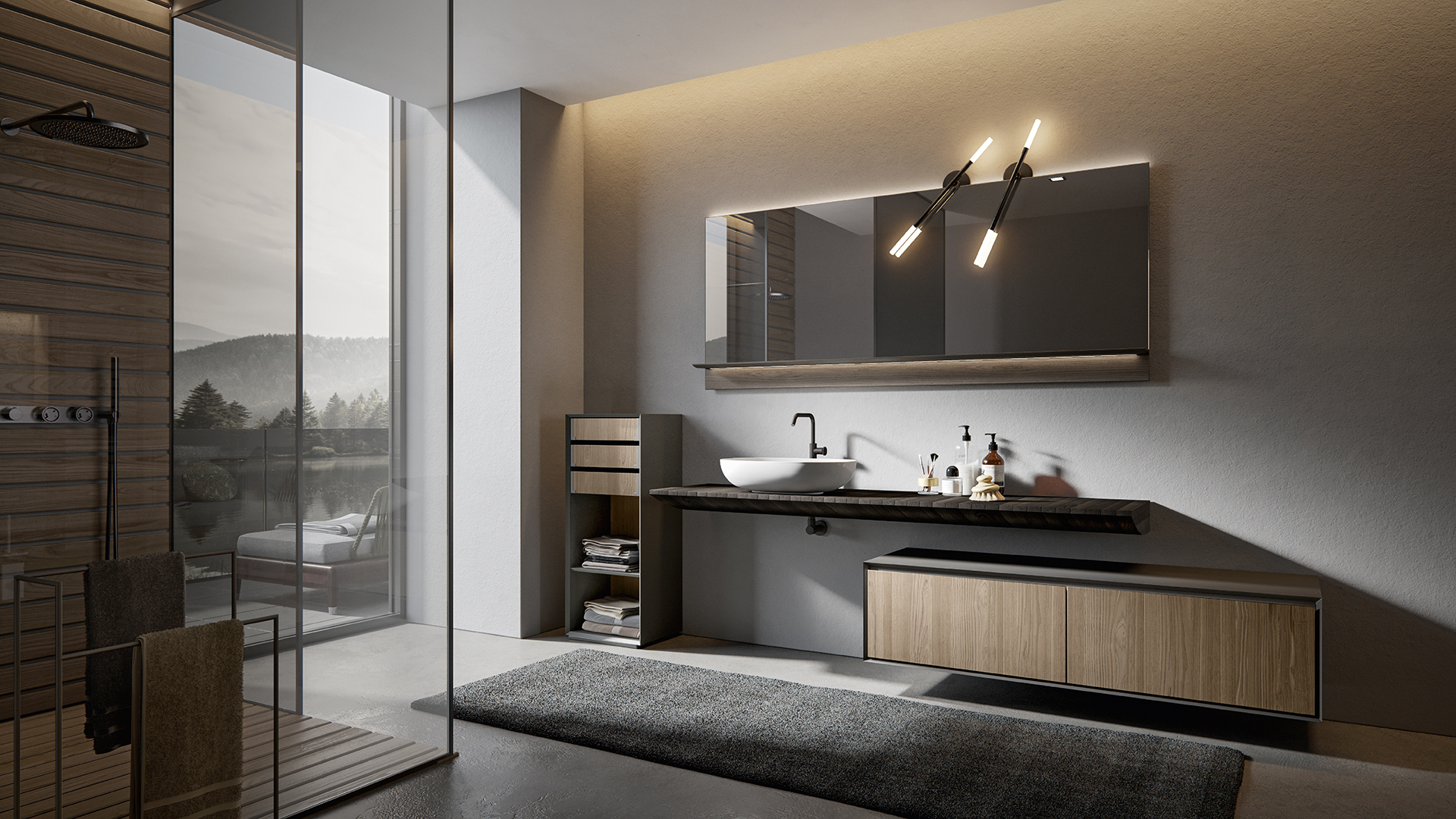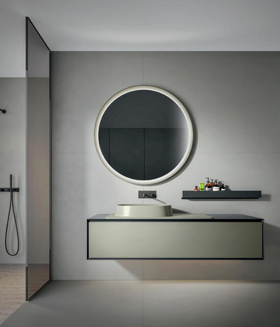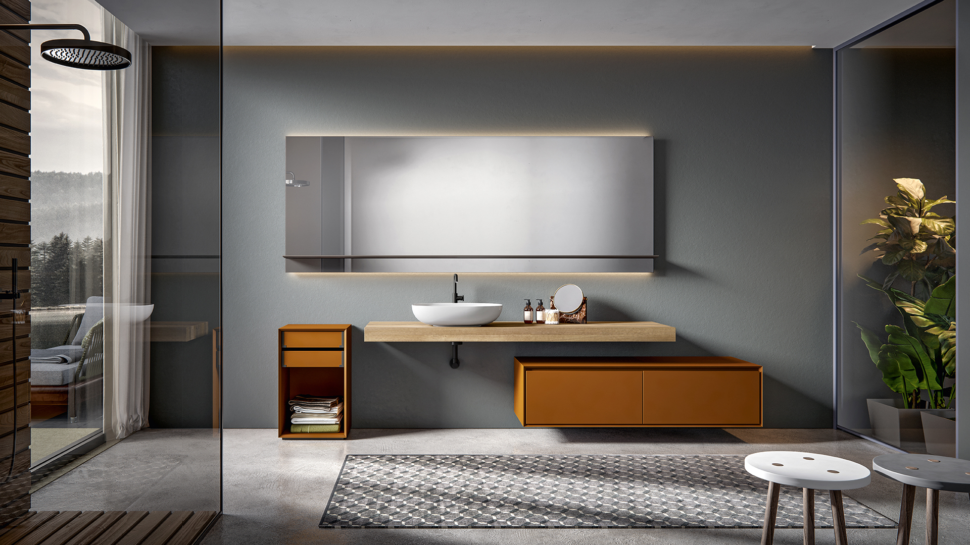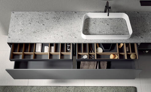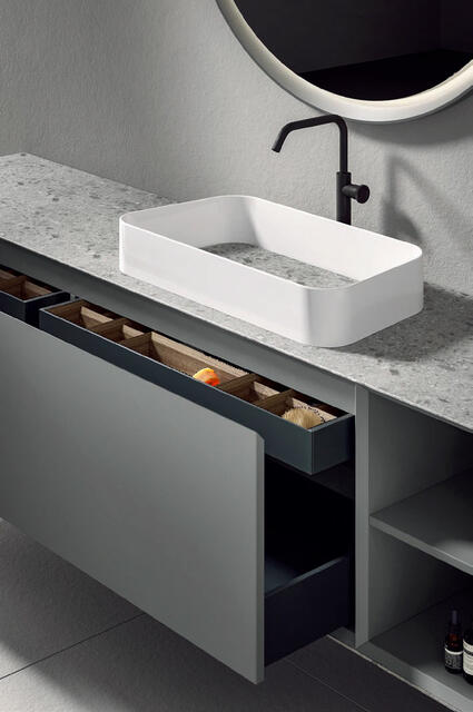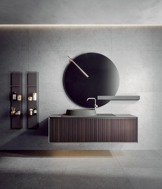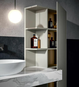 CRIO emphasizes and enhances the possibility of customization combinations between finishes and color. In fact, to the piece of furniture that can be requested in all Edoné colours, optional thin sides in wood, HPL, Laminam®, glass or resin finish can be applied. The result is the availability of very different suggestions, where the protagonist remains the front panel, suspended in a frame to be interpreted.