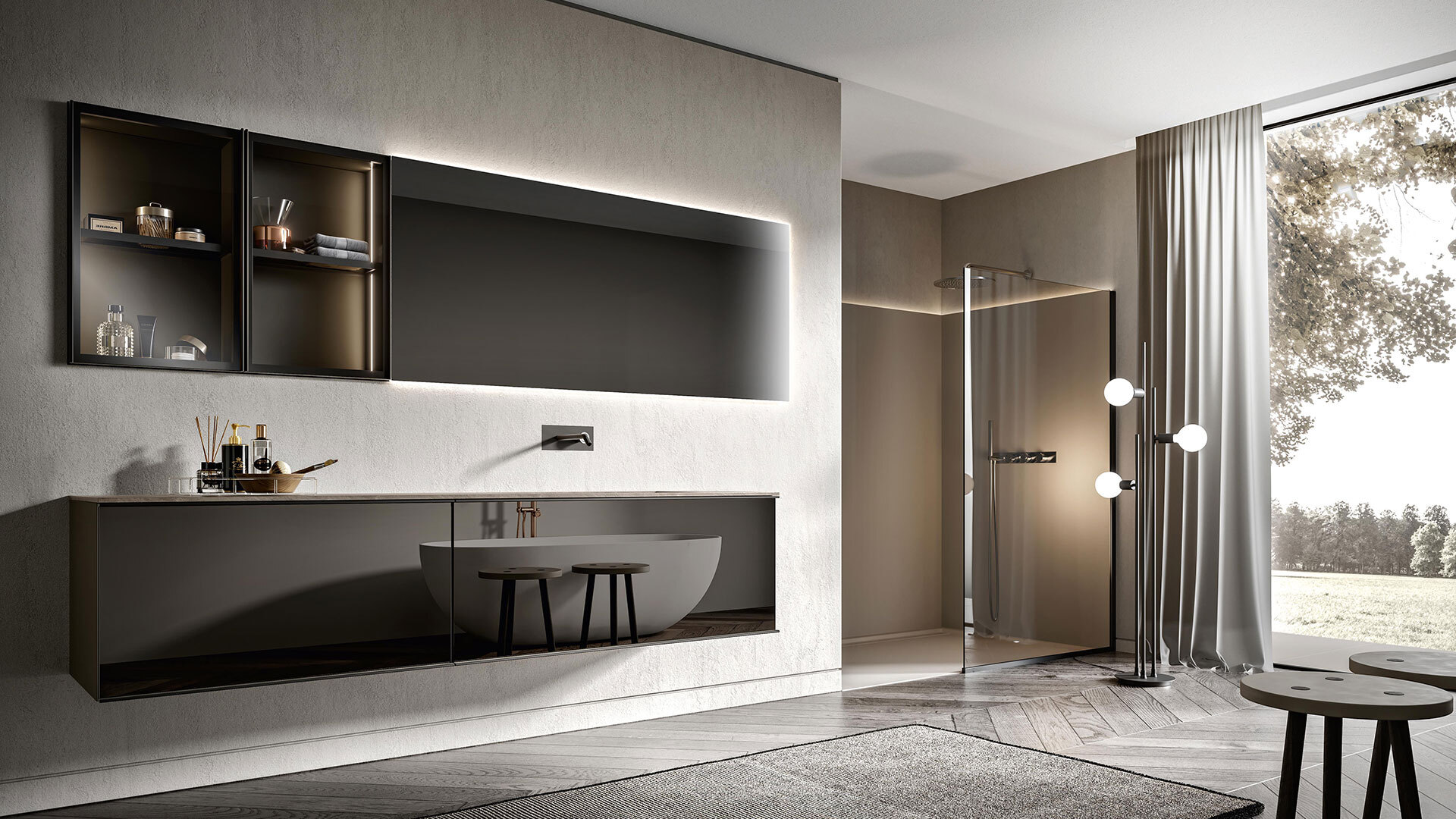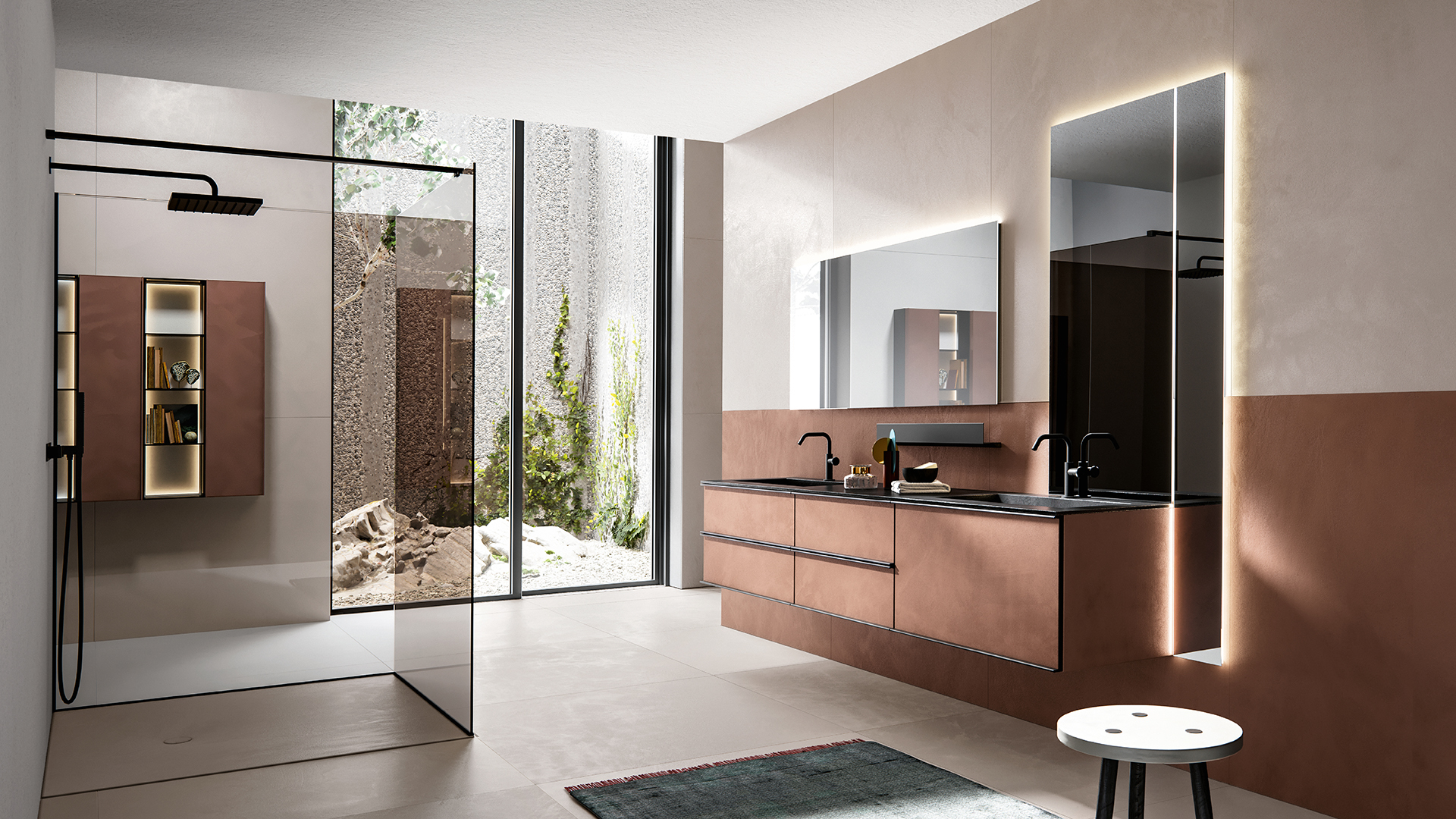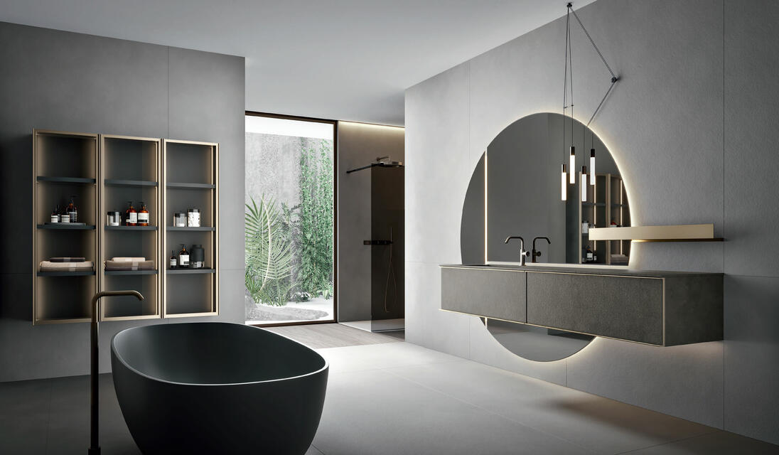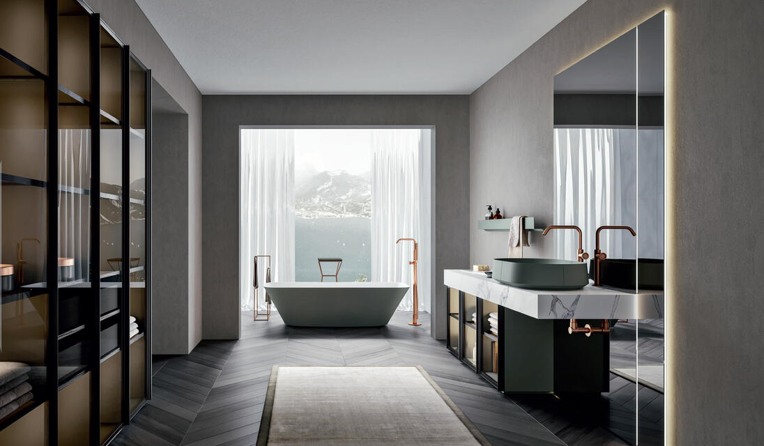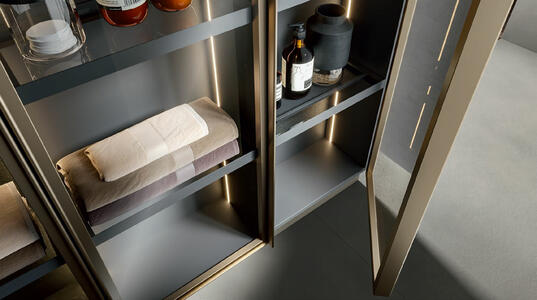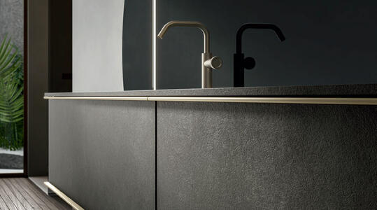 The aluminium frame gives shape to Rea, an unmistakable collection that fully represents Edoné design. The frame with its extraordinary visual effect becomes the perfect slot for the panels of different finishes and materials. The five elegant frame finishes – Gold, Rosato, Champagne, Asfalto and Diamante – can be combined with the front panels to create tone-on-tone solutions as well as interesting contrasts.