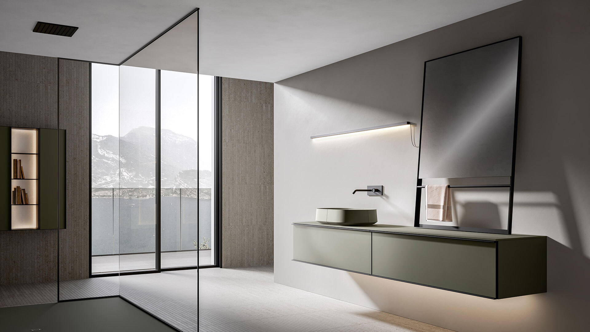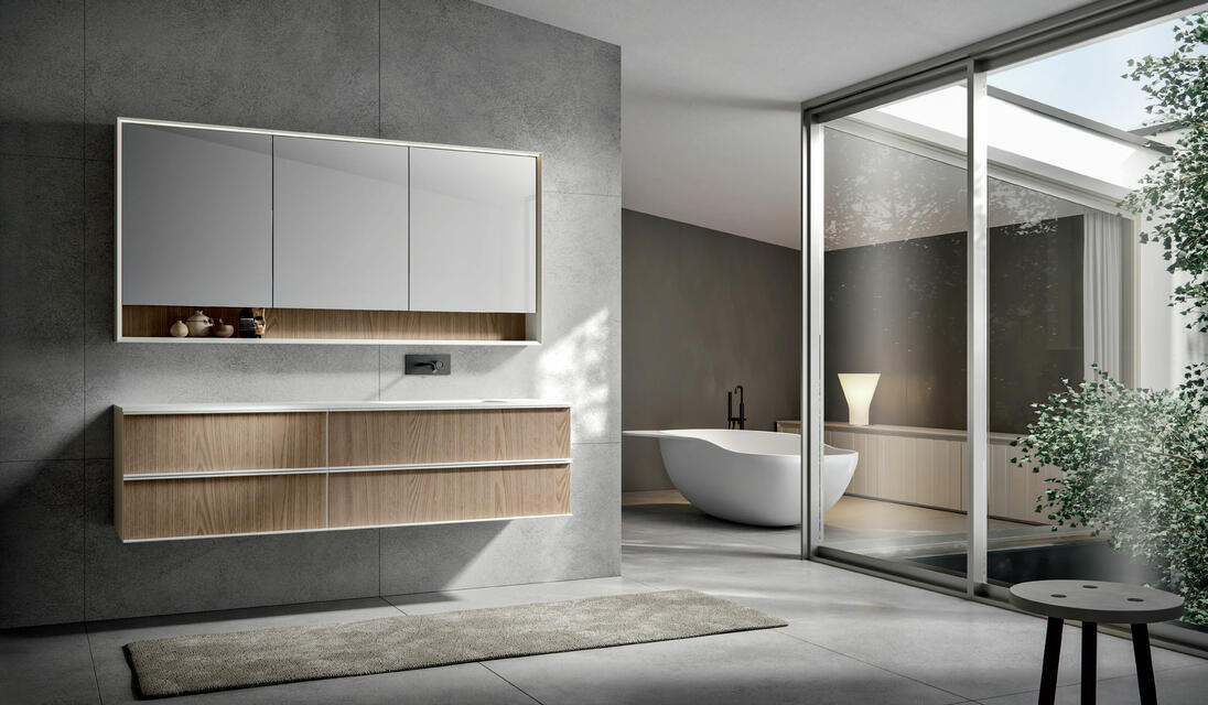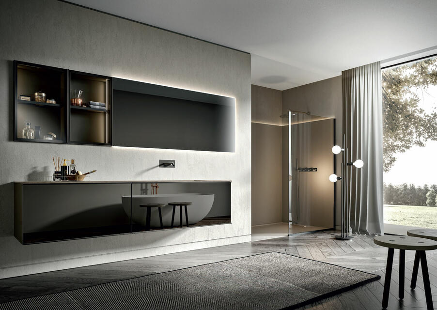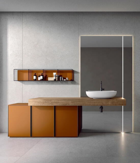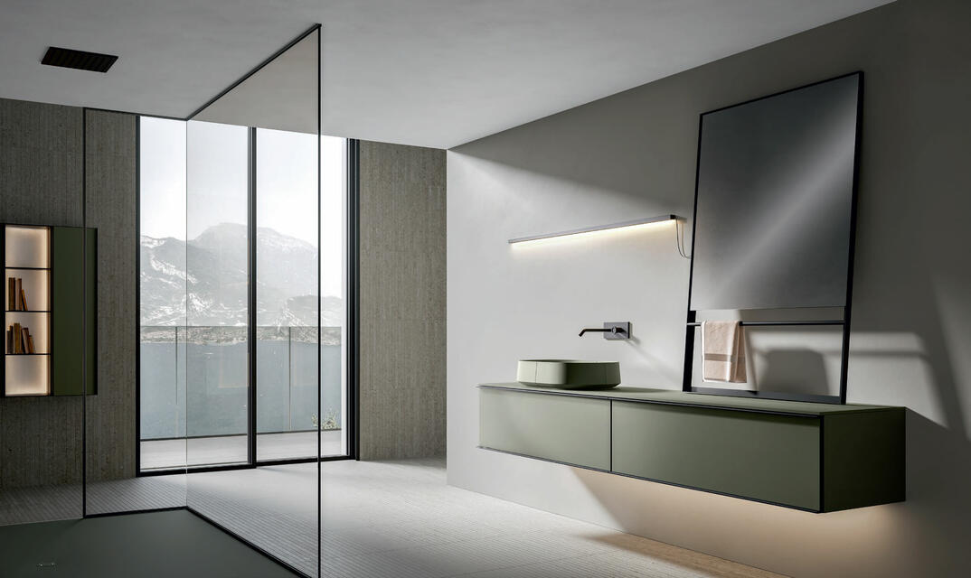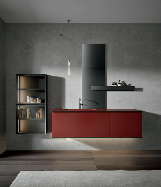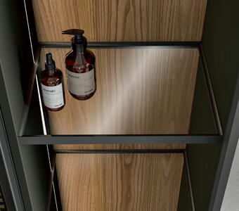 The frame that makes up the structure of REA is perfectly suitable to be mounted both vertically and horizontally. In this way, always using the same design, but playing with the materials, you can give project continuity to elements with positions and functions also very different from each other. The same model, which transforms and adapts, remaining recognizable without ever being repetitive.