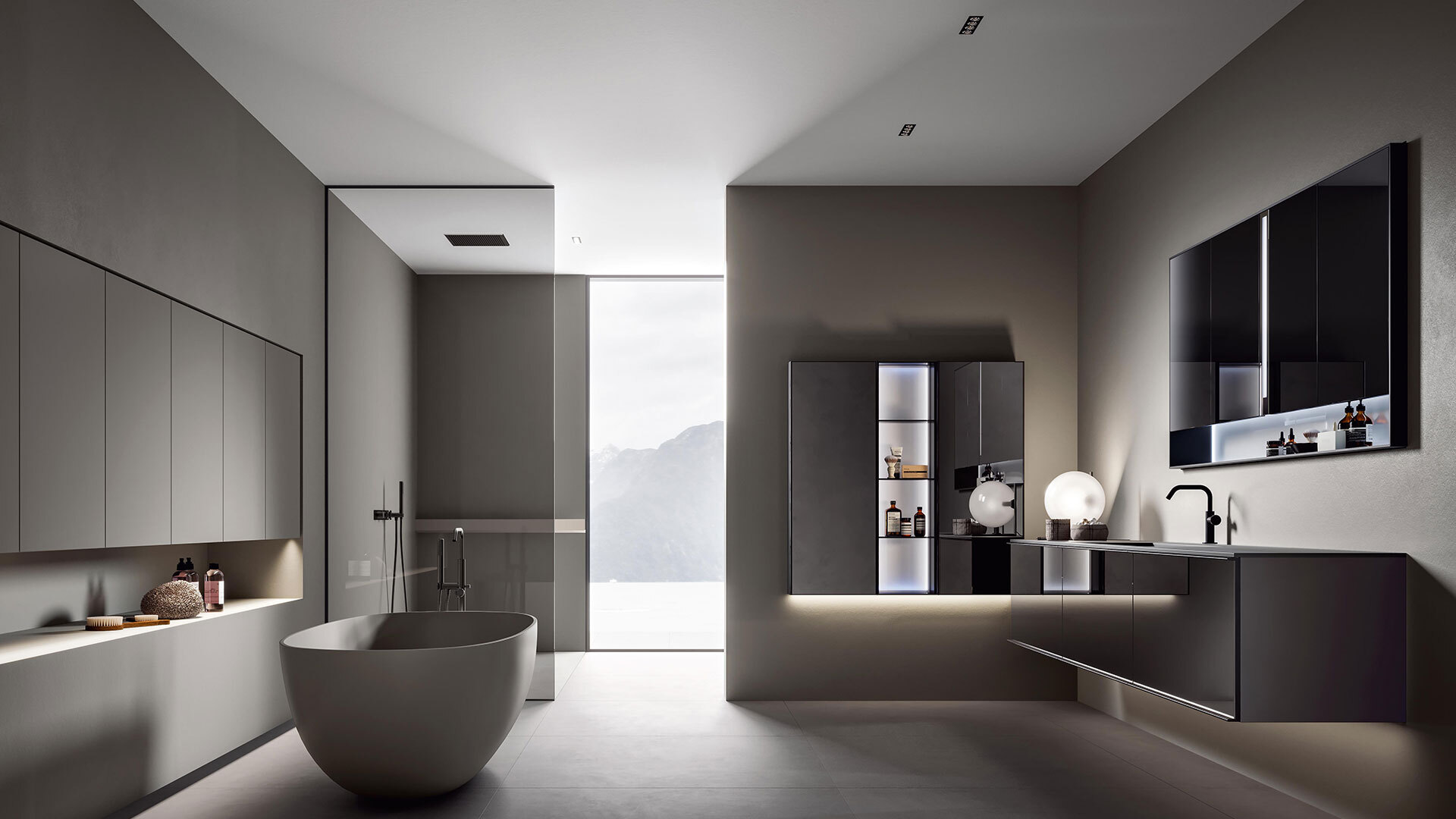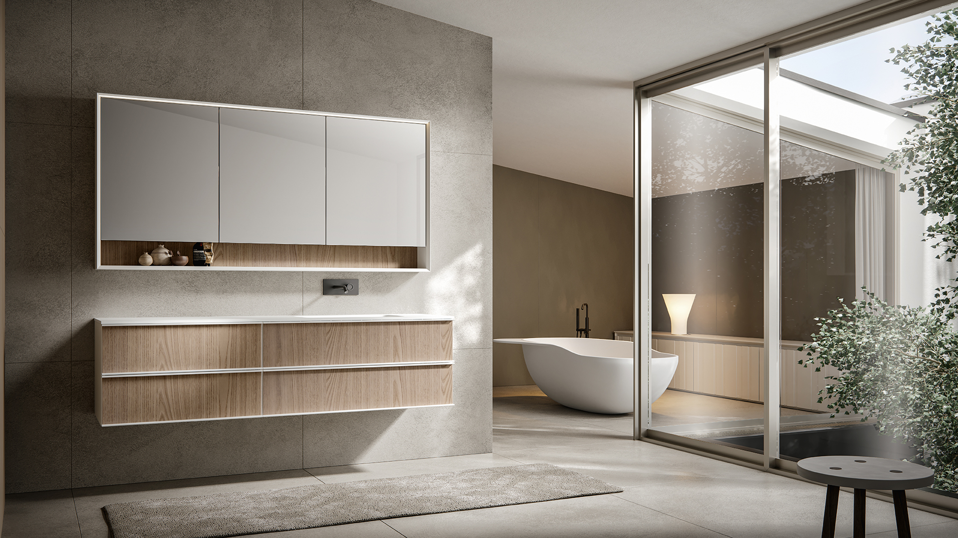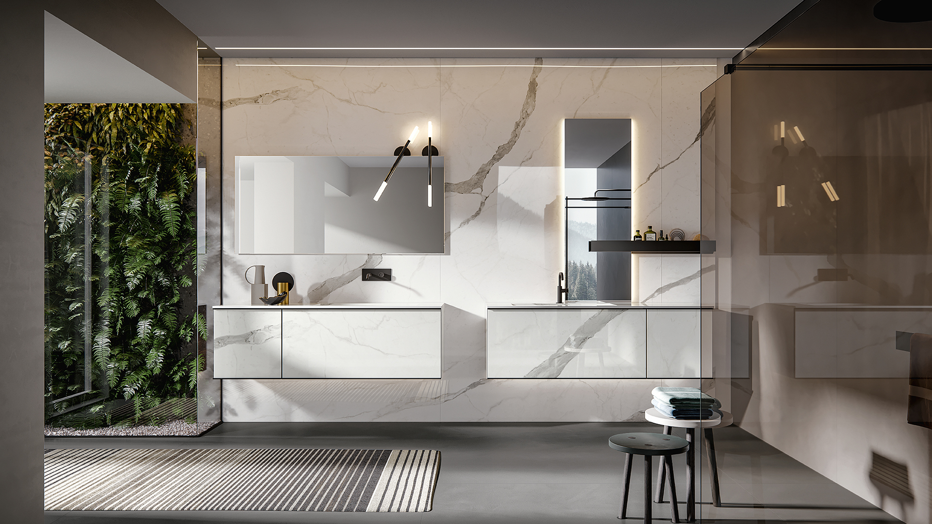 The frame that makes up the structure of REA is perfectly suitable to be mounted both vertically and horizontally. In this way, always using the same design, but playing with the materials, you can give project continuity to elements with positions and functions also very different from each other. The same model, which transforms and adapts, remaining recognizable without ever being repetitive.