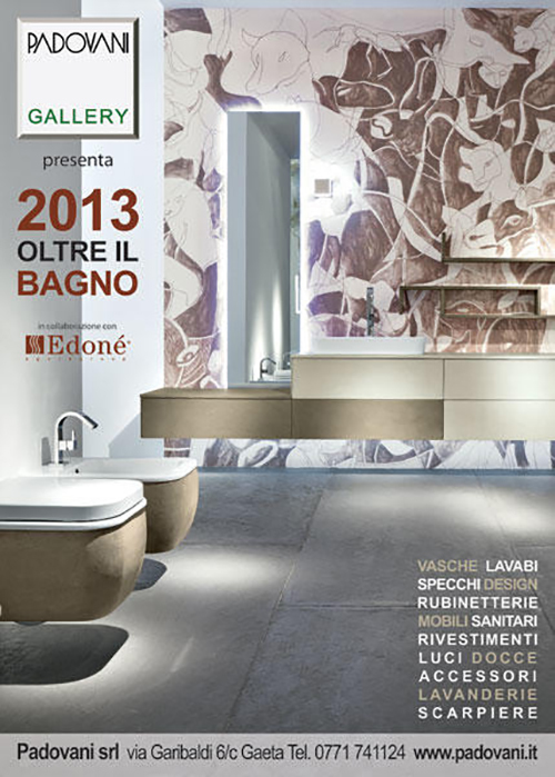Con l'inaugurazione di venerdì 26 ottobre alle 18, la mostra "2013 OLTRE IL BAGNO" offrirà molti spunti per chi progetta uno spazio bagno moderno, colorato e sempre su misura. Il nuovo showroom di Padovani, nella storica sede di Via Garibaldi 6c a Gaeta, Latina, per un anno renderà protagonista l'arredamento del bagno, unendo la progettualità tipica di Padovani con l'innovazione dei prodotti delle collezioni Edoné Design, noto marchio di Agorà Group a Sacile, in provincia di Pordenone.