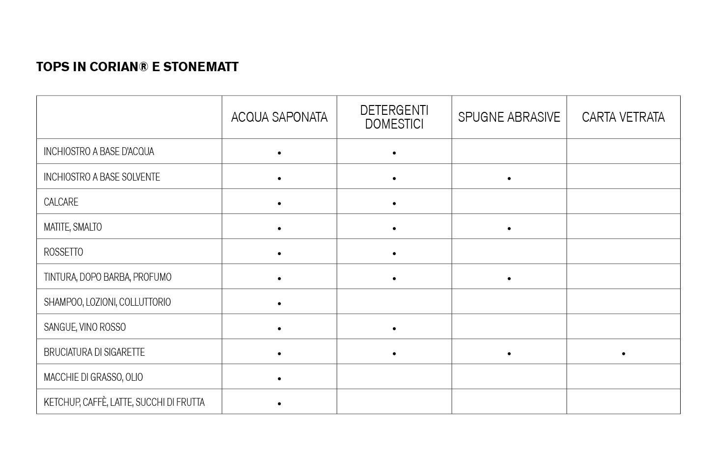 Solo alcune superfici lo consentono. Le solid surface (Corian®, Stonematt, Edotek, Solid) permettono micro‑ripristini: spugna a grana fine o carta molto fine, polish e risciacquo per cancellare piccoli segni. Su laccati e legno l’abrasivo è vietato: lascia micrograffi e spegne la vernice; sulle superfici Stone rischia di incidere la finitura. Meglio restare nella triade discreta — microfibra, pH neutro, asciugatura — e intervenire presto: le macchie “giovani” chiedono meno forza e restituiscono più bellezza.