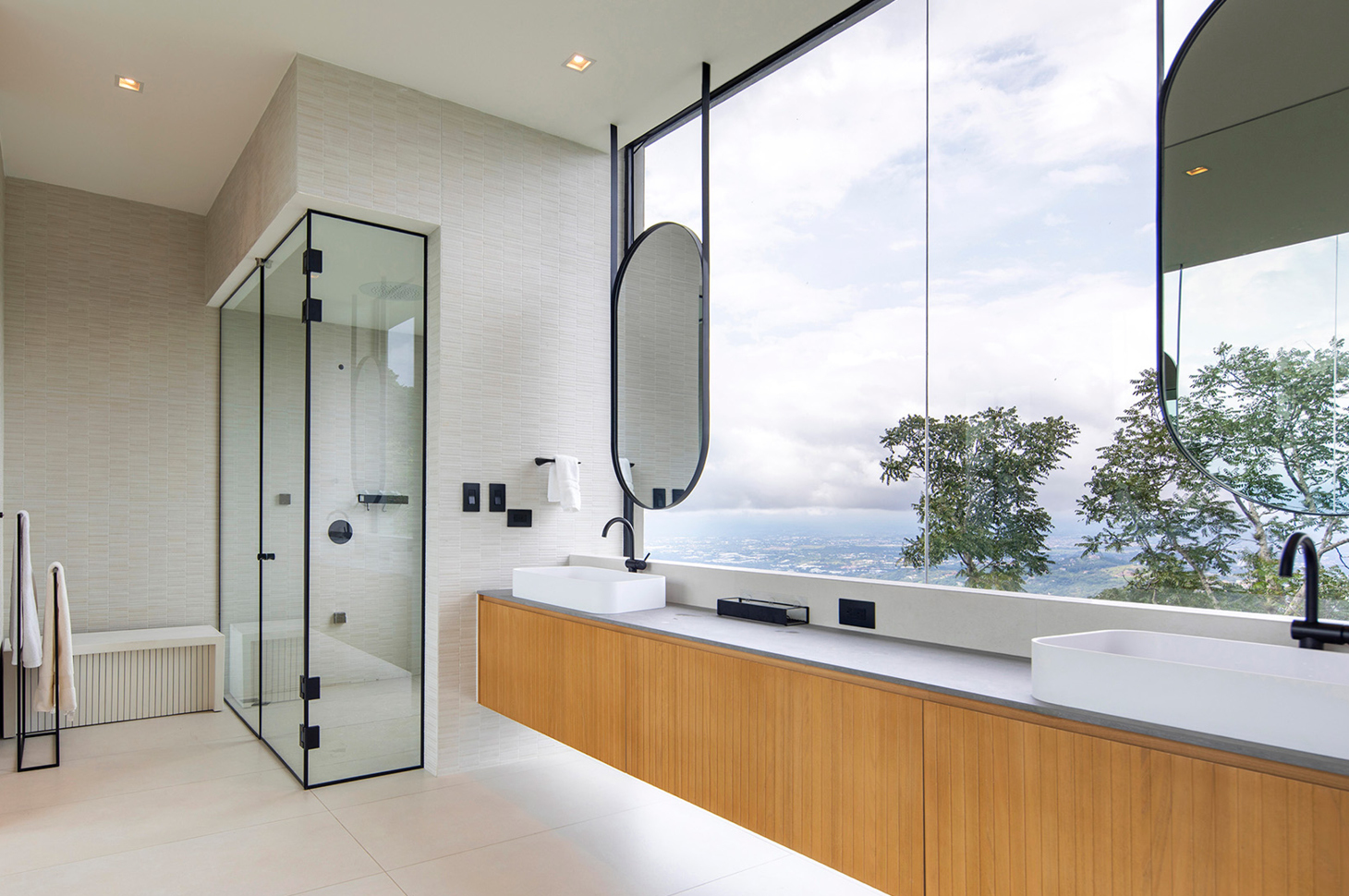 Nota per la sua anima moderna e cosmopolita, Escazú – pochi chilometri a ovest della capitale, San José – è una delle zone più rinomate e alla moda del Costa Rica. La zona offre un’alta qualità della vita che si riflette anche sul gusto architettonico e di interior. Non fa eccezione questo straordinario progetto, frutto della collaborazione tra lo studio di architettura Garnier, lo studio di interior di Taller KEN e Kamalio. Seppure la zona sia densamente urbanizzata, Escazù conserva un forte e preferenziale legame con la natura circostante, che ritroviamo espresso e valorizzato in ogni parte del concept di progetto di Casa Aga. Casa Aga combina elementi architettonici moderni, con tocchi tropicali, in un design contemporaneo, caratterizzato da linee pulite, forme geometriche nette e l’uso di vetro, acciaio e cemento. A questo si combina la volontà di “incorporare” la natura all’interno dell’esperienza abitativa, con l’utilizzo di vetrate talmente ampie da diventare vere pareti in vetro, che permettono di godere delle viste panoramiche senza interruzioni, massimizzando l’illuminazione naturale e creando un’atmosfera serena e rigenerante. Gli arredi riprendono il gusto moderno e minimalista, ma espresso in morbidi toni neutri e materici, combinato all’utilizzo materiali di alta qualità, come legno, marmo e pietra naturale per conferire un’eleganza e una raffinatezza distintive.