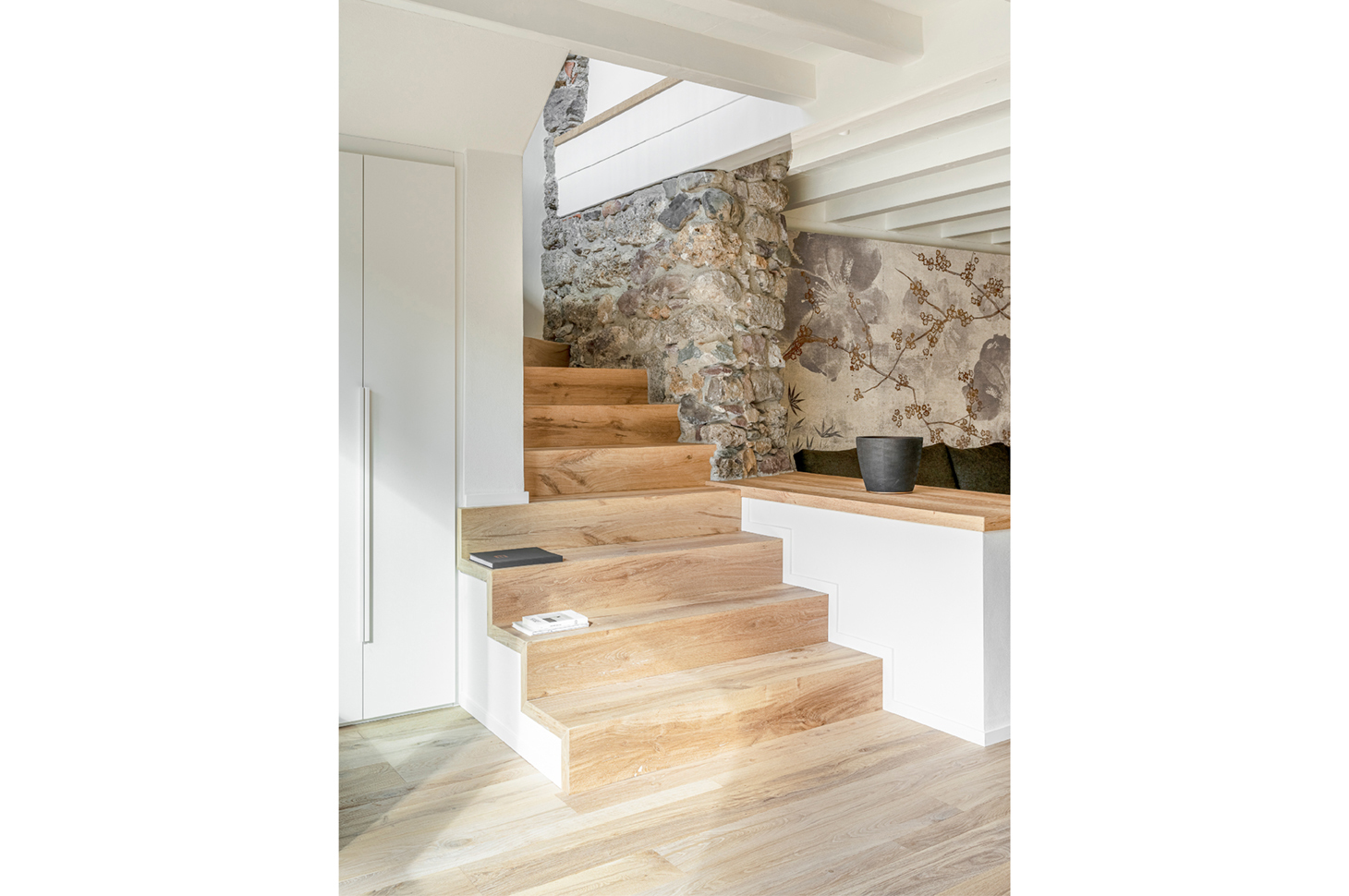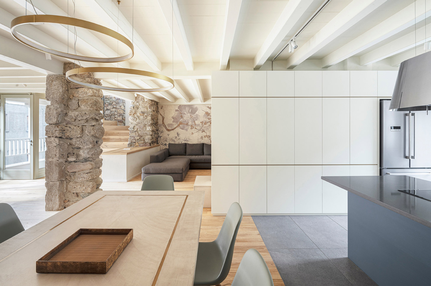 Due residenze private, un filo conduttore. Siamo in Val Seriana, in un contesto abitativo con un’alta densità di richiesta di recupero e valorizzazione di residenze tradizionali. Obiettivo di questi casi di restyling era ottenere degli ambenti dal gusto sobrio, ma caldo, come nella tradizione di questa zona. In entrambe le residenze sono stati valorizzati elementi architettonici di pregio: pareti ed elementi in pietra, travi, soffitti e pavimenti in legno. Contemporaneamente, accanto a questa azione di recupero, si è unita una delicata opera di innesto di elementi dal gusto più contemporaneo, ma contraddistinti da materiali e lavorazioni sempre caratterizzati da un rimando al gusto e alla tradizione artigiana.