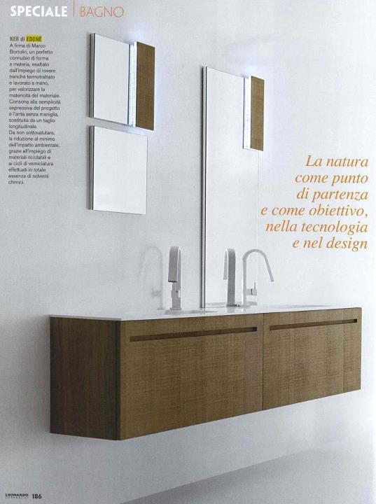 Consona alla semplicità espressiva del progetto è l'anta senza maniglia, sostituita da un taglio longitudinale.