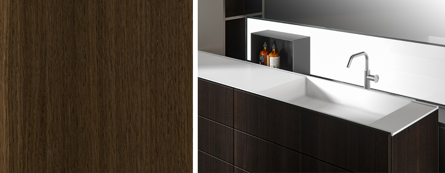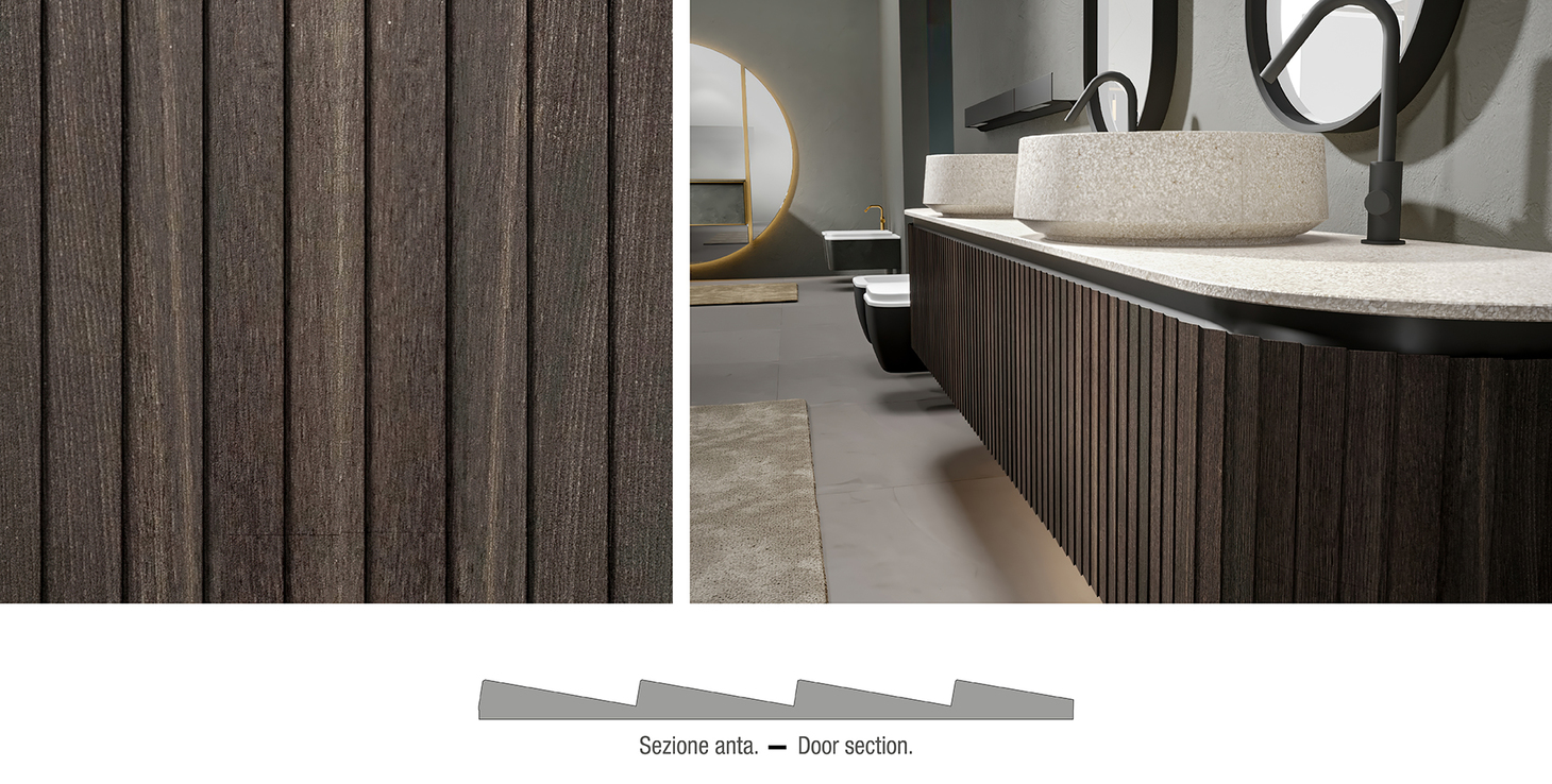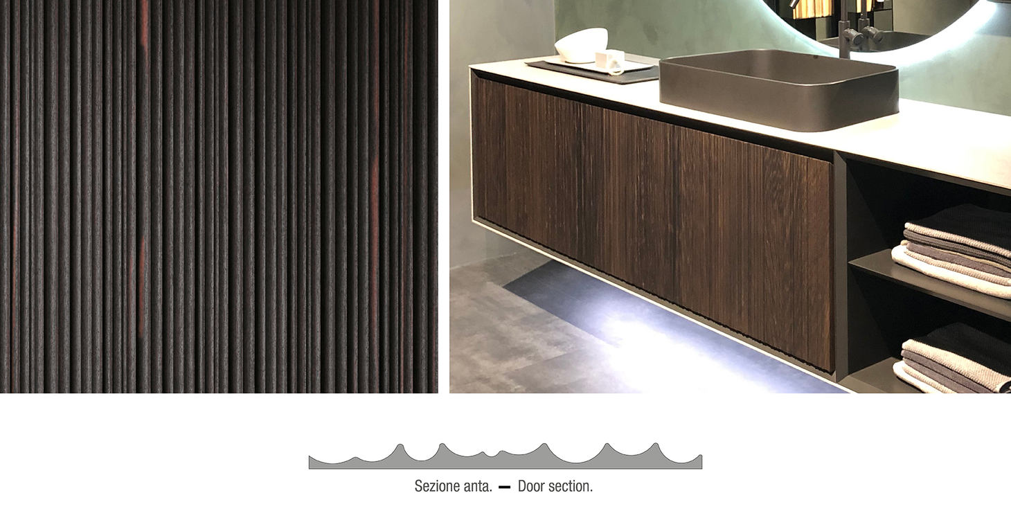 Veneziana è una texture già nota a chi conosce il mondo Edonè, che con l’introduzione del Rovere Termotrattato amplia la gamma di tonalità disponibili, declinandosi nei toni carichi e intensi che questa essenza esprime naturalmente dopo il trattamento.