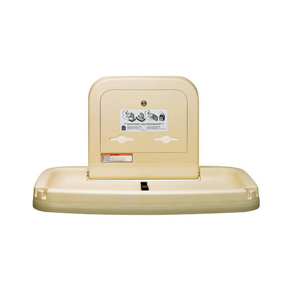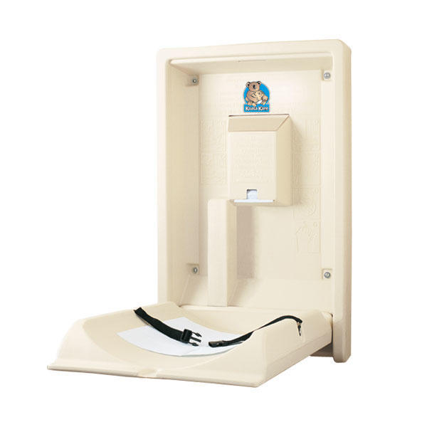 Il prodotto viene installato su qualsiasi genere di parete ed è fornito completo di cinture di sicurezza, dispenser doppio di tovagliette in carta per un totale di 50 tovagliette, gancio per borsa porta pannolini e gancio porta borsa; inoltre, le istruzioni per un corretto utilizzo del fasciatoio sono stampate a rilievo.
