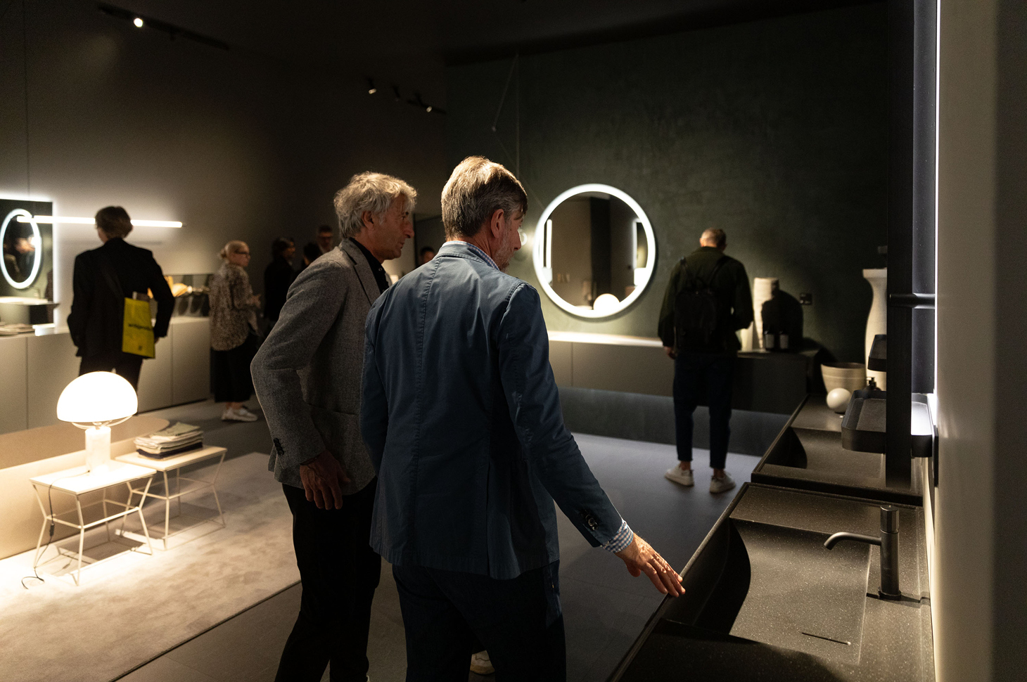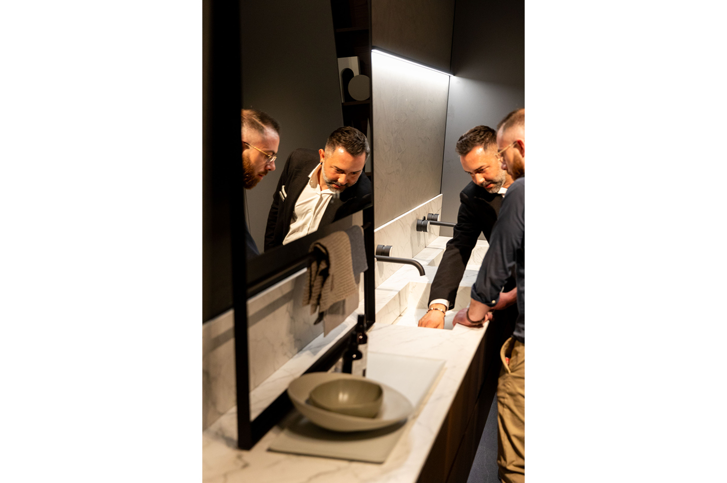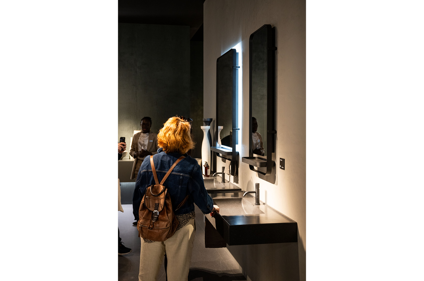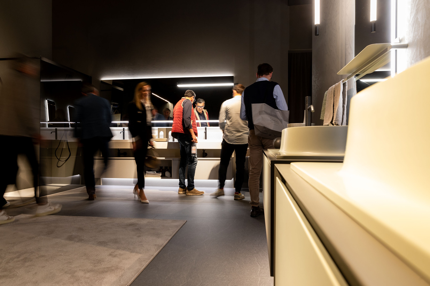 “Where experience evolves” è stato il grande tema conduttore di questo Salone 2024 e noi lo abbiamo incarnato dando nuova personalità ad alcune delle creazioni che più sono state amate nella precedente edizione. Perché fare design di qualità significa anche questo: creare proposte con una logica vincente, capace di evolvere, mutare, reinventarsi. Come nel caso di Hexis Consolle, che incarna con una personalità assolutamente unica e nuova, l’evoluzione del concept del piano integrato Hexis, presentato nel 2022. Altra grande conferma la potente versatilità progettuale di Calipso, che qui abbiamo presentato nella versione Squared, unito alla nuova texture Cheope e impreziosito dal fascino ipnotico della specchiera Eclissi, nella sua versione full con diametro 190. Sempre apprezzatissima Minerva, il nostro sistema dedicato agli ambienti lavanderia, capace di modulare soluzioni funzionali sia in metrature monto ampie, che in bagni di piccole dimensioni.