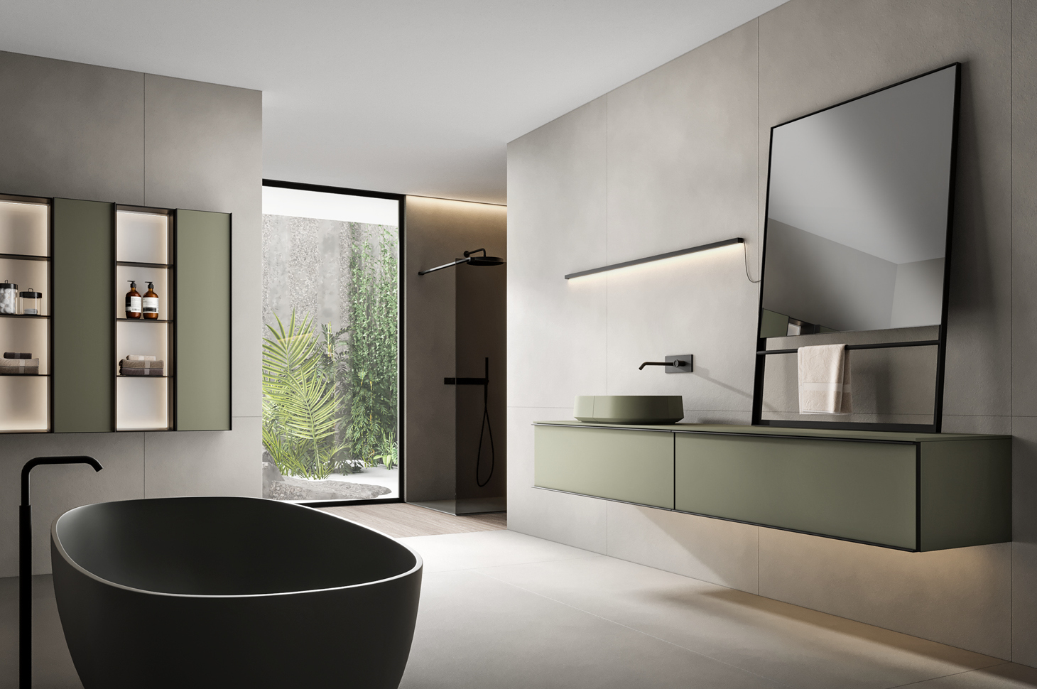 Con Rea l’unico limite è la capacità di immaginare materiali e colori combinati, su frontali, su schiene e su top. Un concept davvero ultra versatile, in cui resta fissa solo la soluzione super chic di un telaio cornice, disegnato proprio per sostenere la funzionalità, senza mettere alcun vincolo alla creatività.