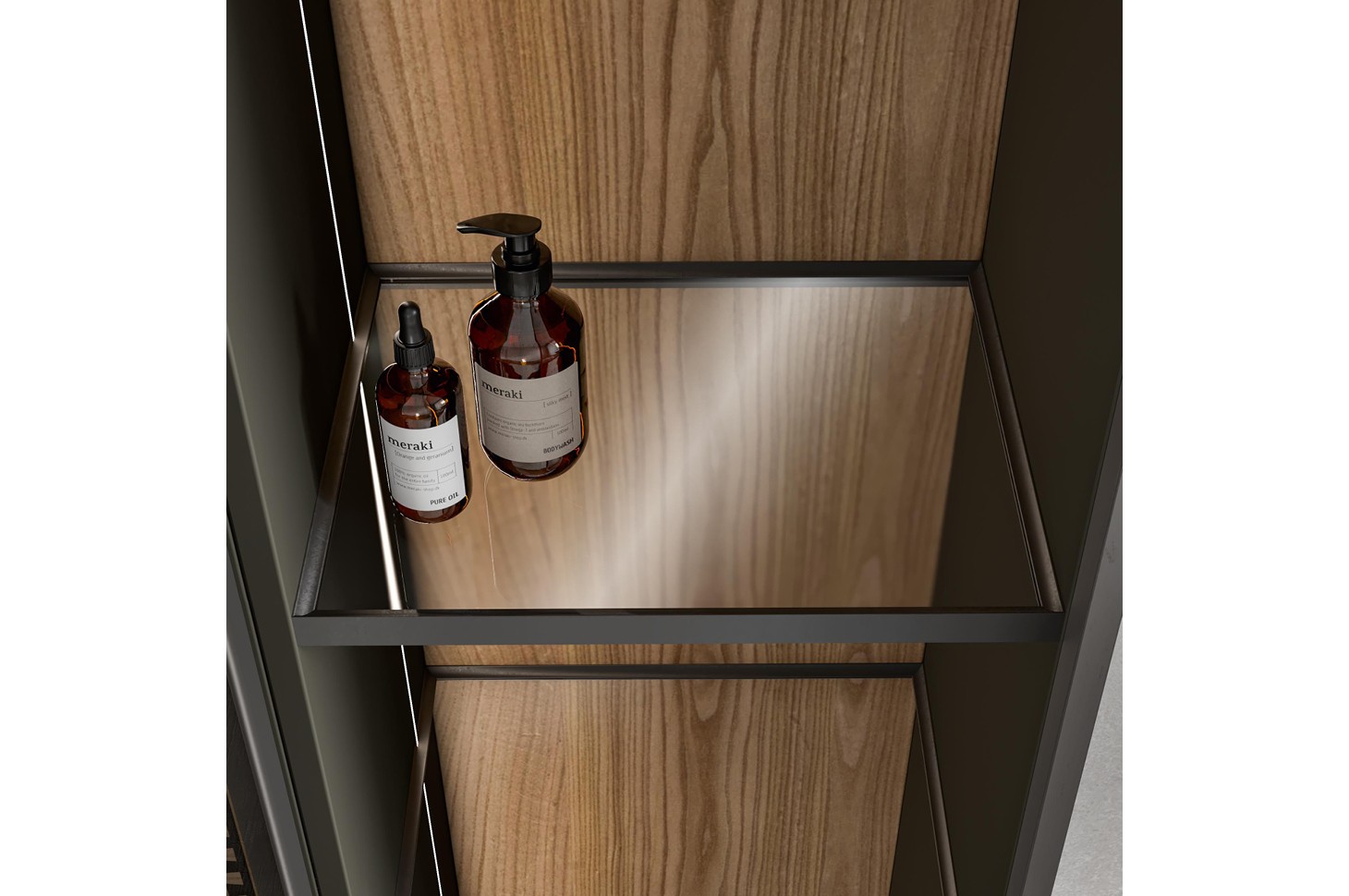 Il telaio è disponibile in 5 elegantissime finiture: Asfalto, Diamante, Champagne, Rosato e Gold, da combinare con i pannelli frontali in soluzione tono su tono o in contrasto. Il suo profilo ultra minimale, di straordinaria resa estetica, diventa la cornice perfetta per alloggiare pannelli di finiture e materiali da scegliere dall’ampia proposta a catalogo.