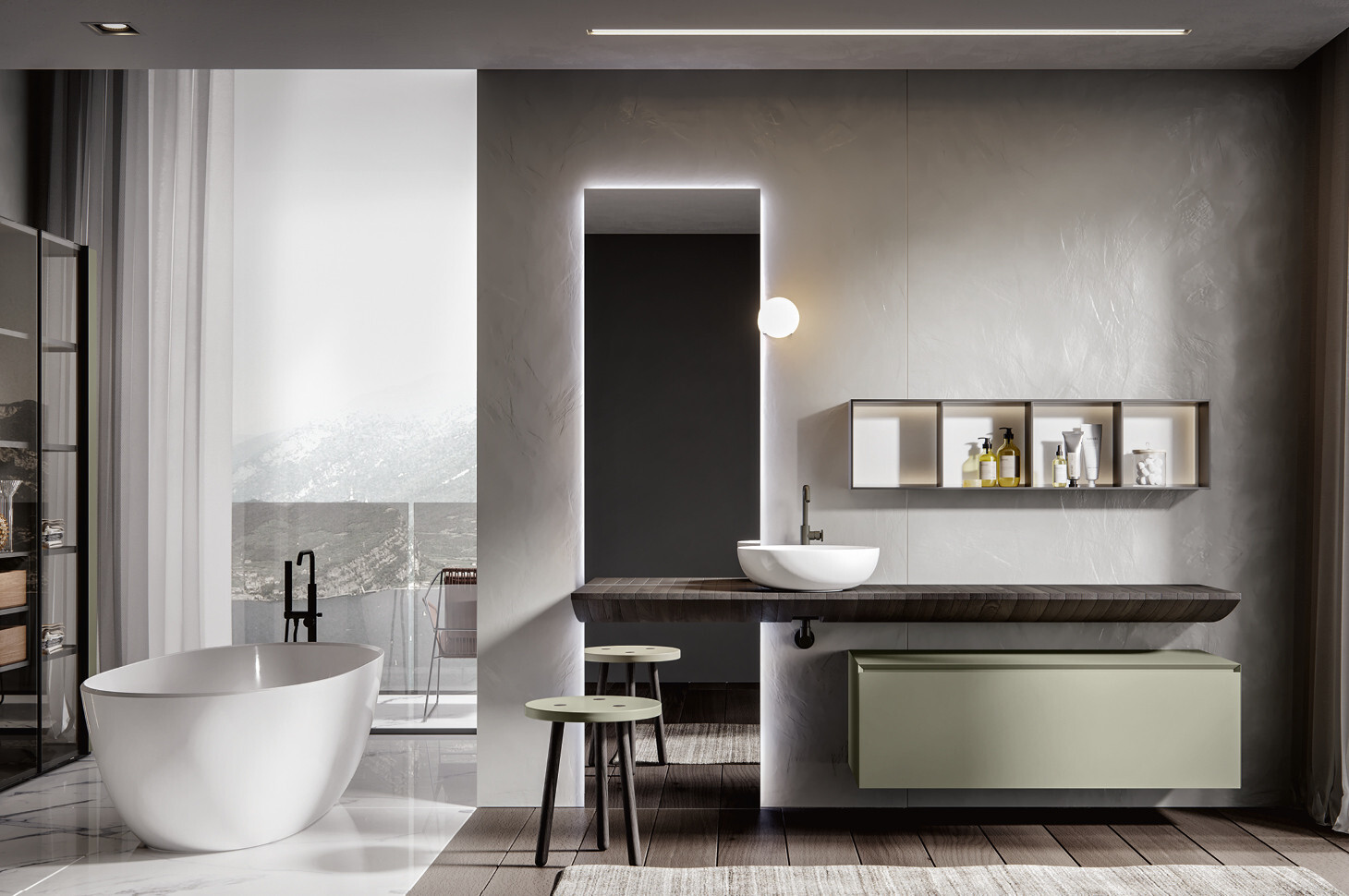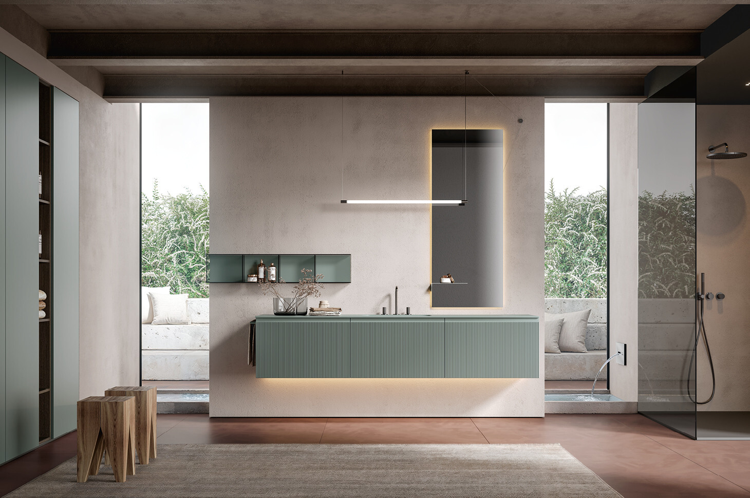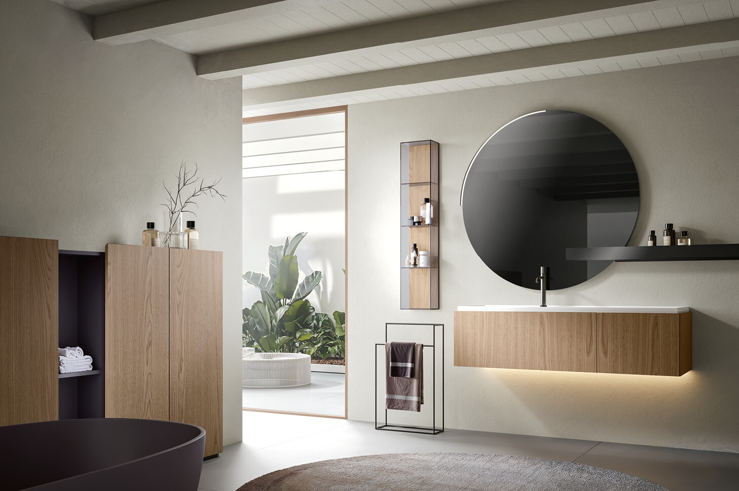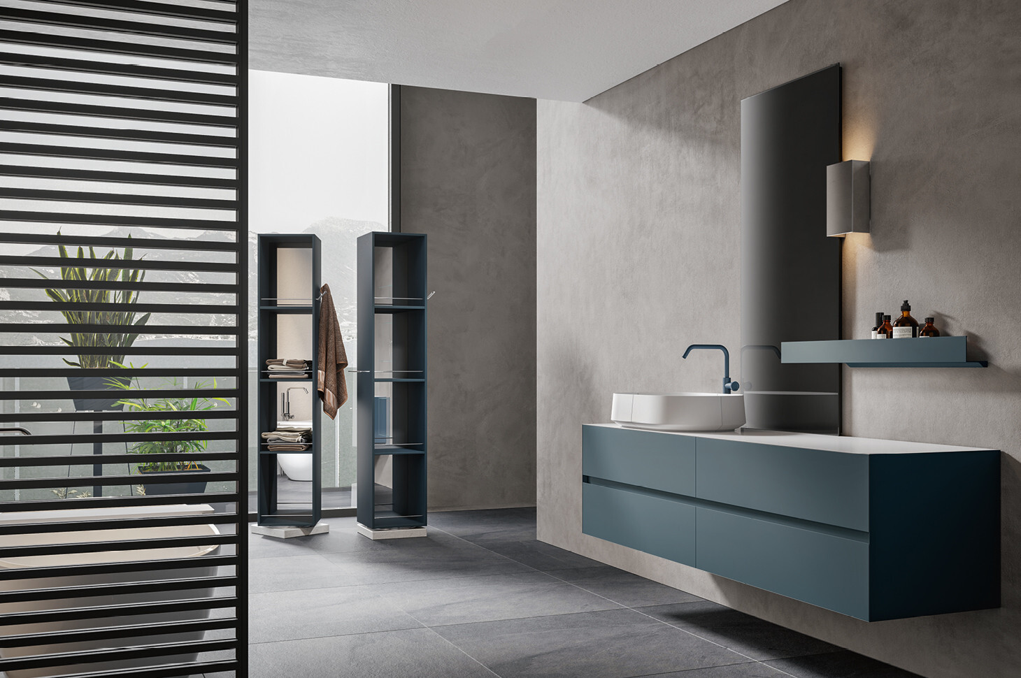 Pensate per completare e ampliare la composizione bagno, offrono nuove possibilità progettuali, trasformando l’ambiente in un insieme ordinato, coerente e armonico. La verticalità diventa così linguaggio: un segno che disegna ritmo e profondità, restituendo equilibrio e carattere al progetto.