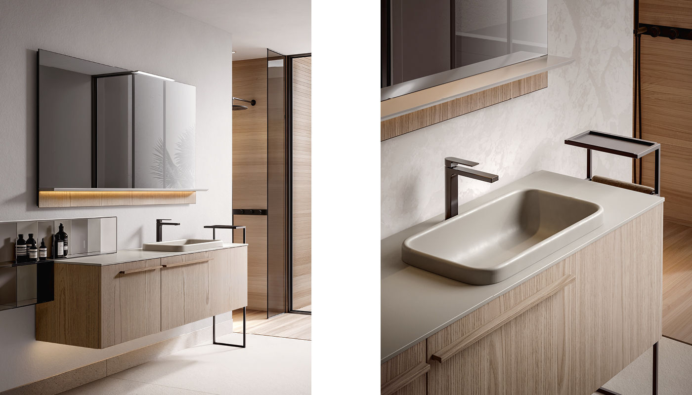 Disponibile per piani con lavabo in appoggio e per piani con lavabo integrato.