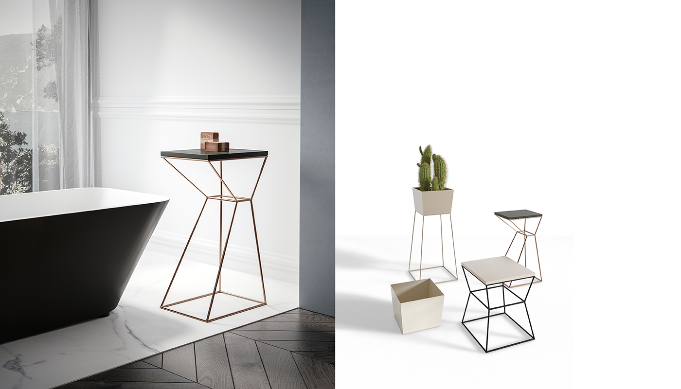 L. 28 P. 40 H.70 Tavolo rettangolare con top in finitura.