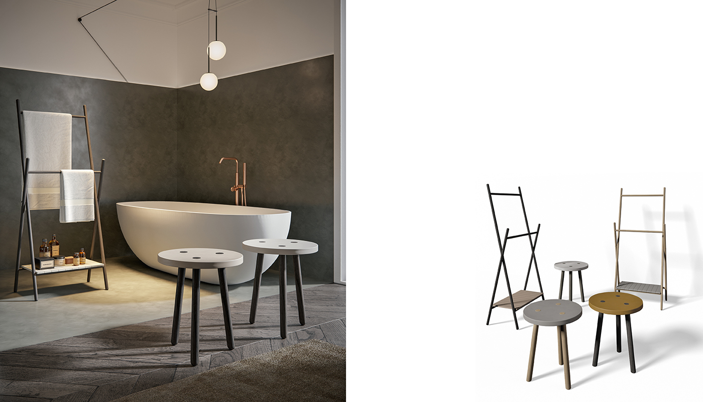 L. 60 H. 135-180 cm Portasalviette STEP (struttura laccata opaca - traversi Natural Wood o Solid Wood).