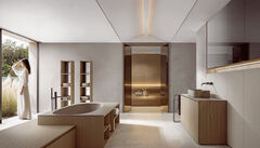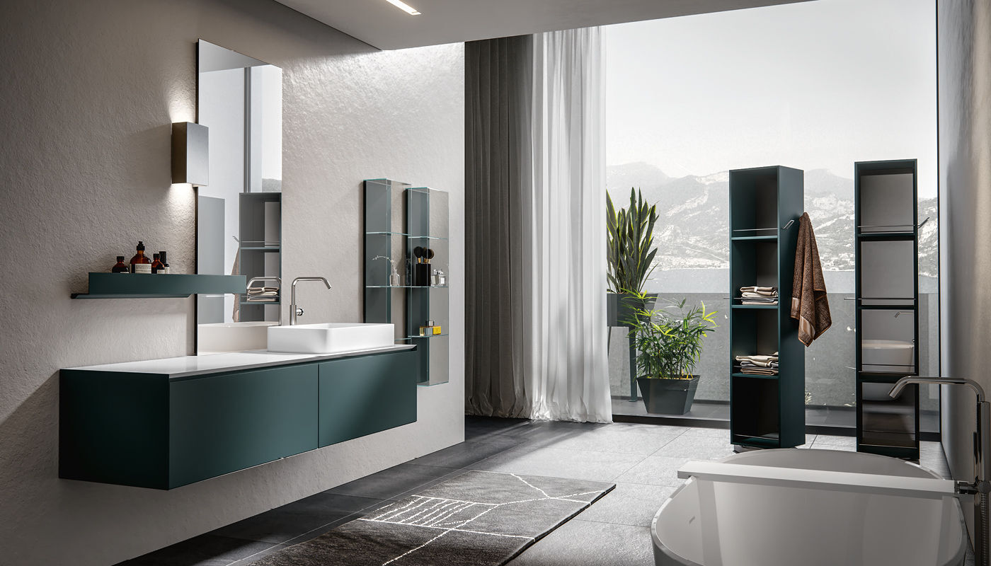 Completa di accessori cromo e basamento in marmo colore grigio chiaro.